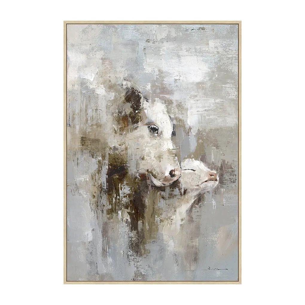 A sophisticated blend of abstract expression and rustic charm, An Eternal Bond captures the intimate moments between a cow & a calf, rendered with emotional depth...