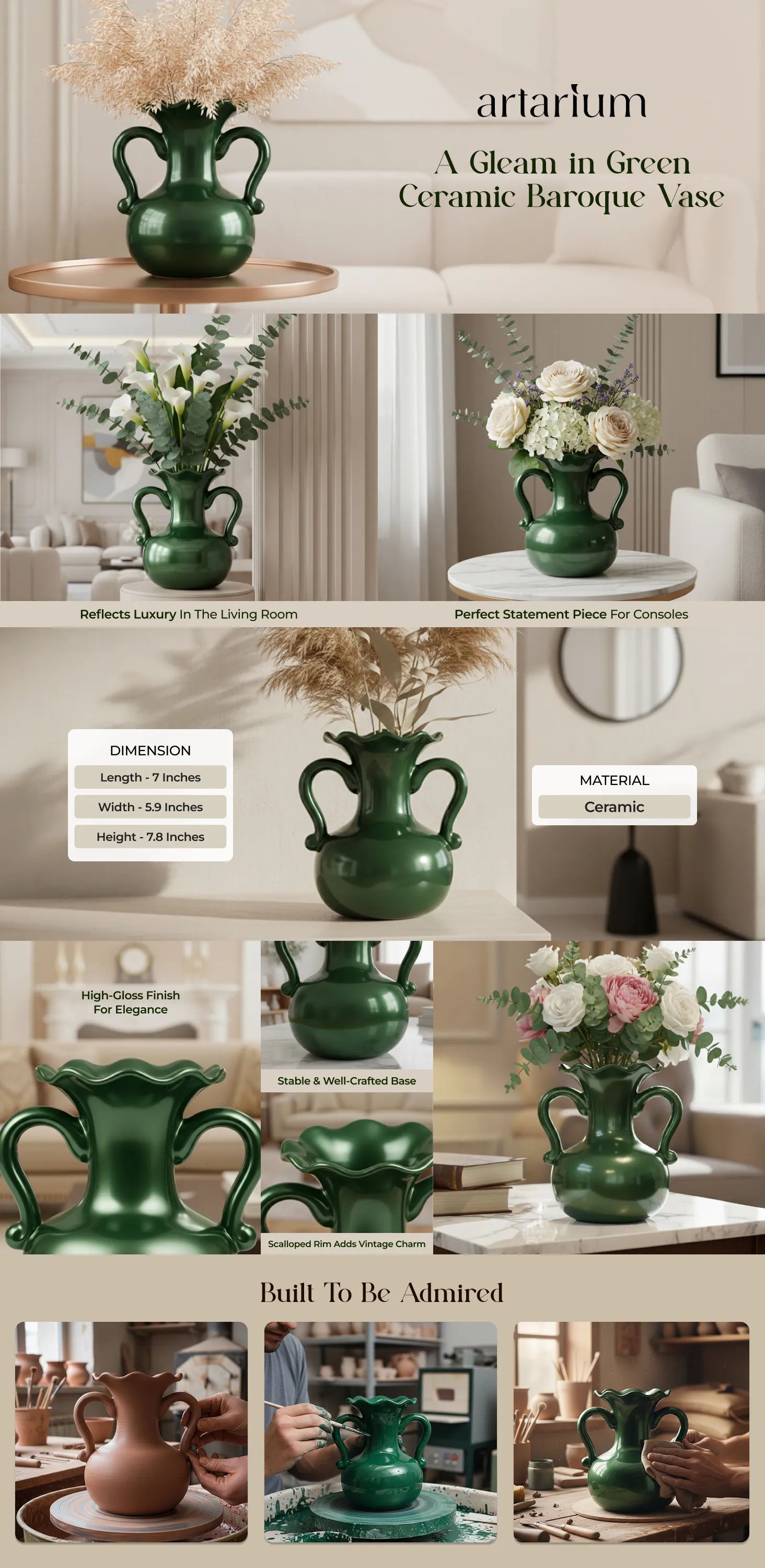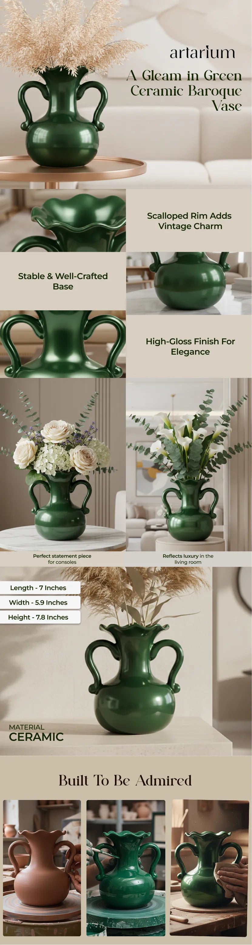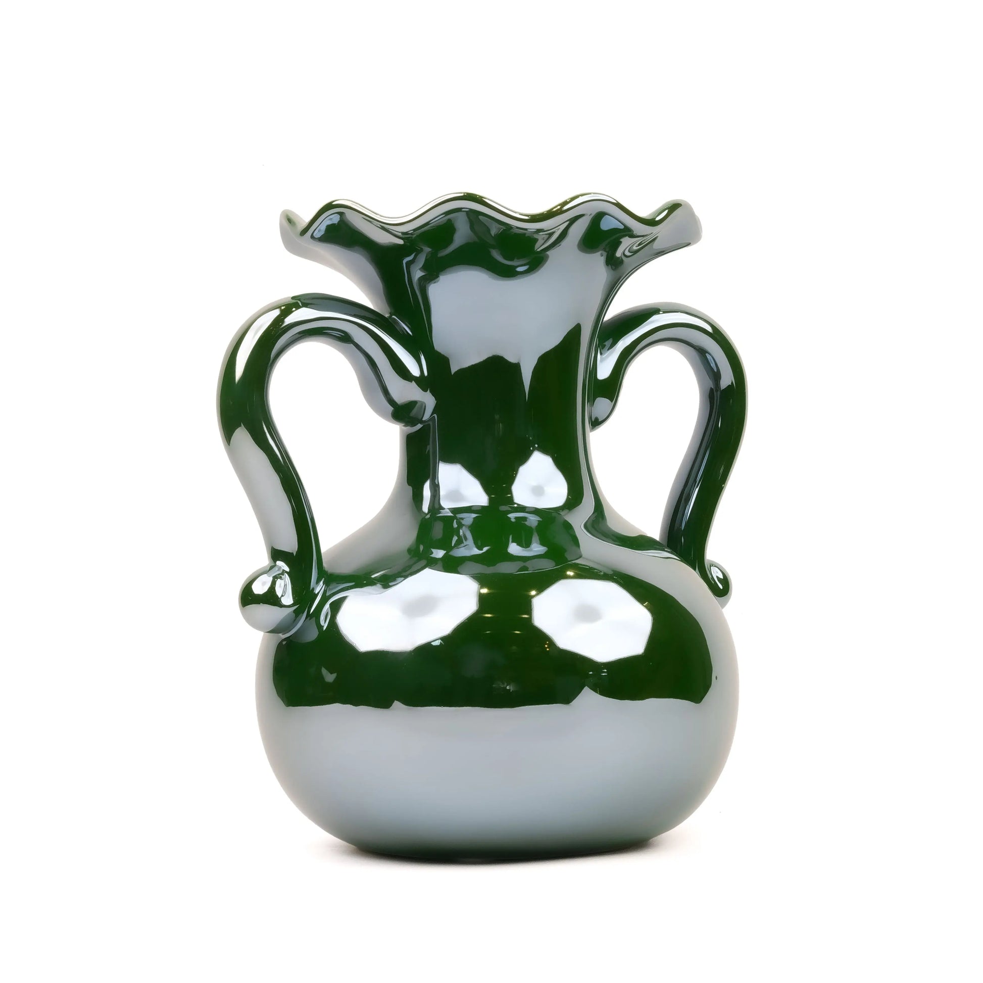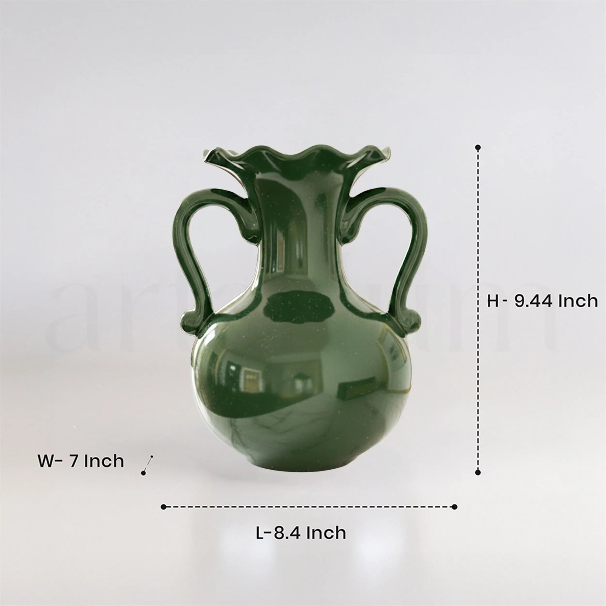 Drenched in a decadent deep green glaze, A Gleam in Green is a baroque-style ceramic vase that exudes old-world grandeur. Its lustrous, mirror-like finish mirrors the mystery of a shadowed rainforest, while the sculptural silhouette commands attention. Designed not merely to adorn, it infuses any space with elegance and drama.