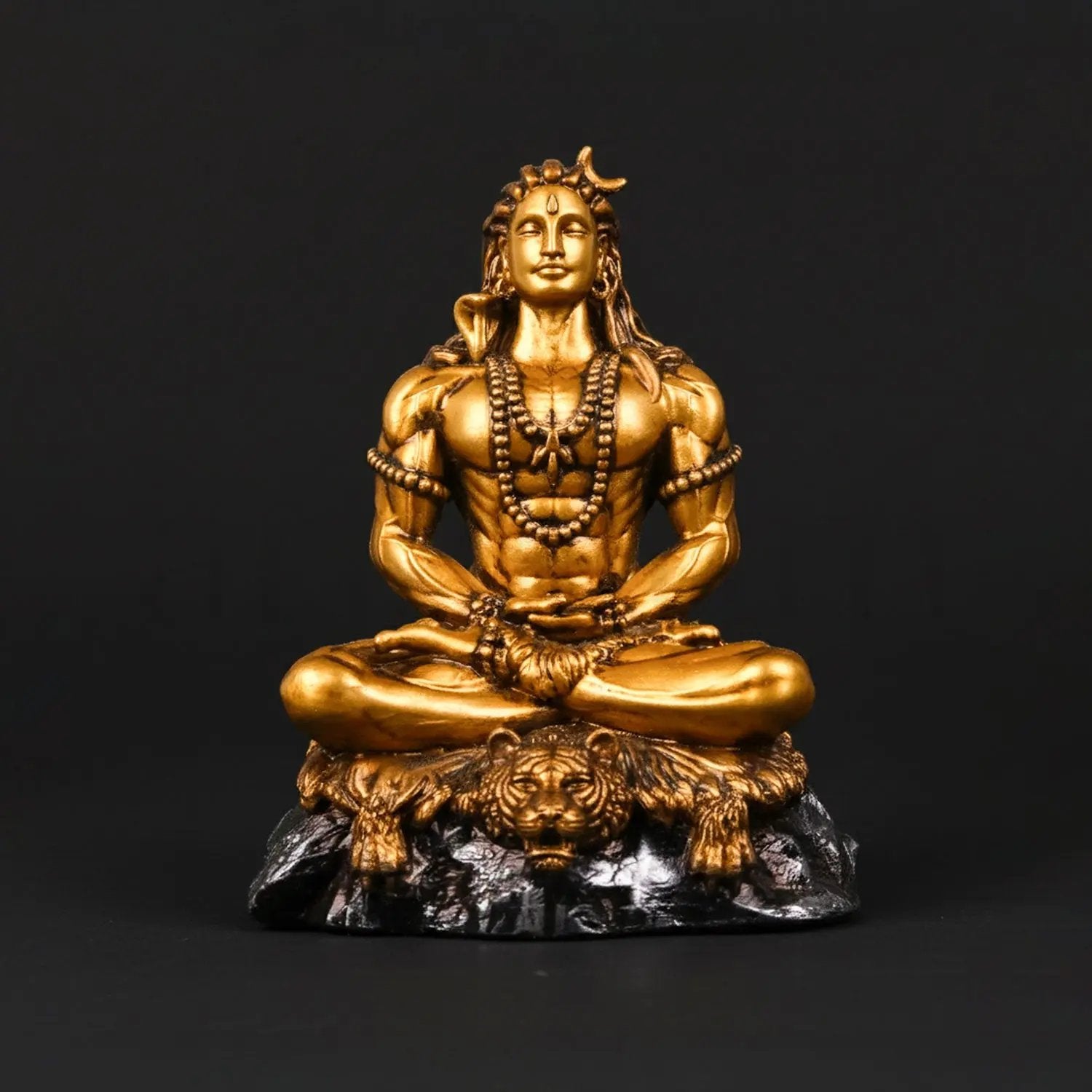 From the lush green foothills of Tamil Nadu to the heart of your home, this serene Adiyogi Shiva Statue is a tribute to the meditative form of Lord Shiva, the first Yogi and the teacher of Yoga. His face, immersed in blissful trance, mirrors the majestic Adiyogi statue in Coimbatore, while his body rests in the principal Yogic posture. Resting on a tiger skin atop a rocky base, this sculpture honors Shiva’s omniscient presence - a symbol of wisdom and spiritual awakening.