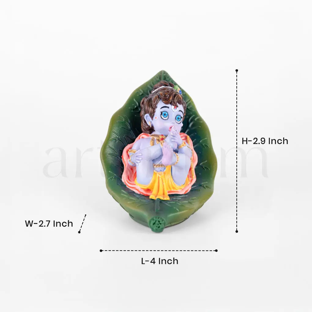 The Bal Mukund brings to life the infant form of Lord Krishna during the episode of pralaya (dissolution). As the waters dangerously rise to submerge the continents and mountains, the divine baby Krishna lies on a banyan leaf, content, innocently sucking his toe. The statue captures every bit of calm and wonderment on the young deity’s face. Each detail is vividly cast, offering you a beautiful addition to your space.