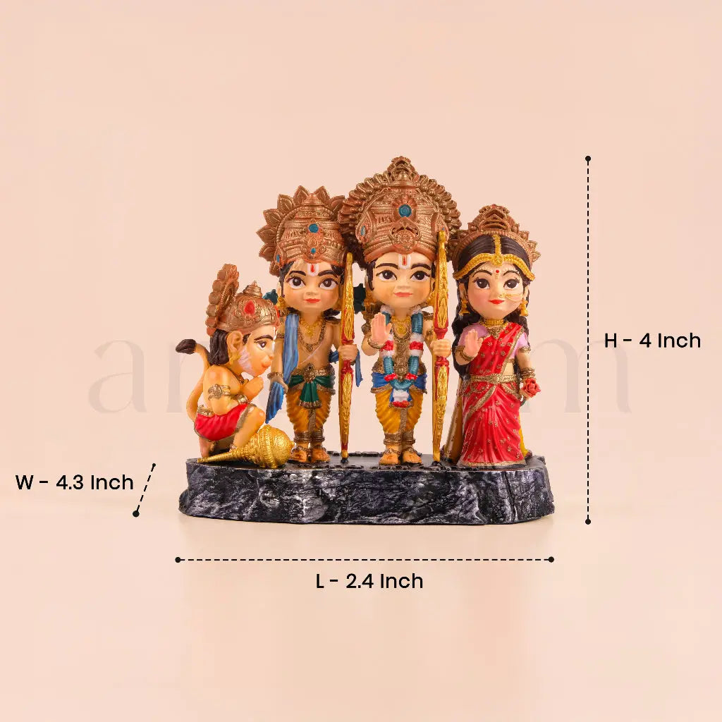 The Bal Swaroop Ram Darbar is as delightful as it is divine. Beautifully crafted to show the charming side of the royal court, this statue depicts Lord Rama, Lakshman, Sita, and Hanuman Ji in their endearing child form - a sight that’ll instantly warm your heart. Each idol is beautifully adorned, symbolizing humility, strength, and eternal blessings.