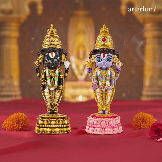 It is beautifully crafted and painted, with each detail telling a story through a symbol or motif. Be it the shankh in his hand or his Varada Mudra, said to grant boons and shower blessings - everything is captured vividly in two captivating variations.