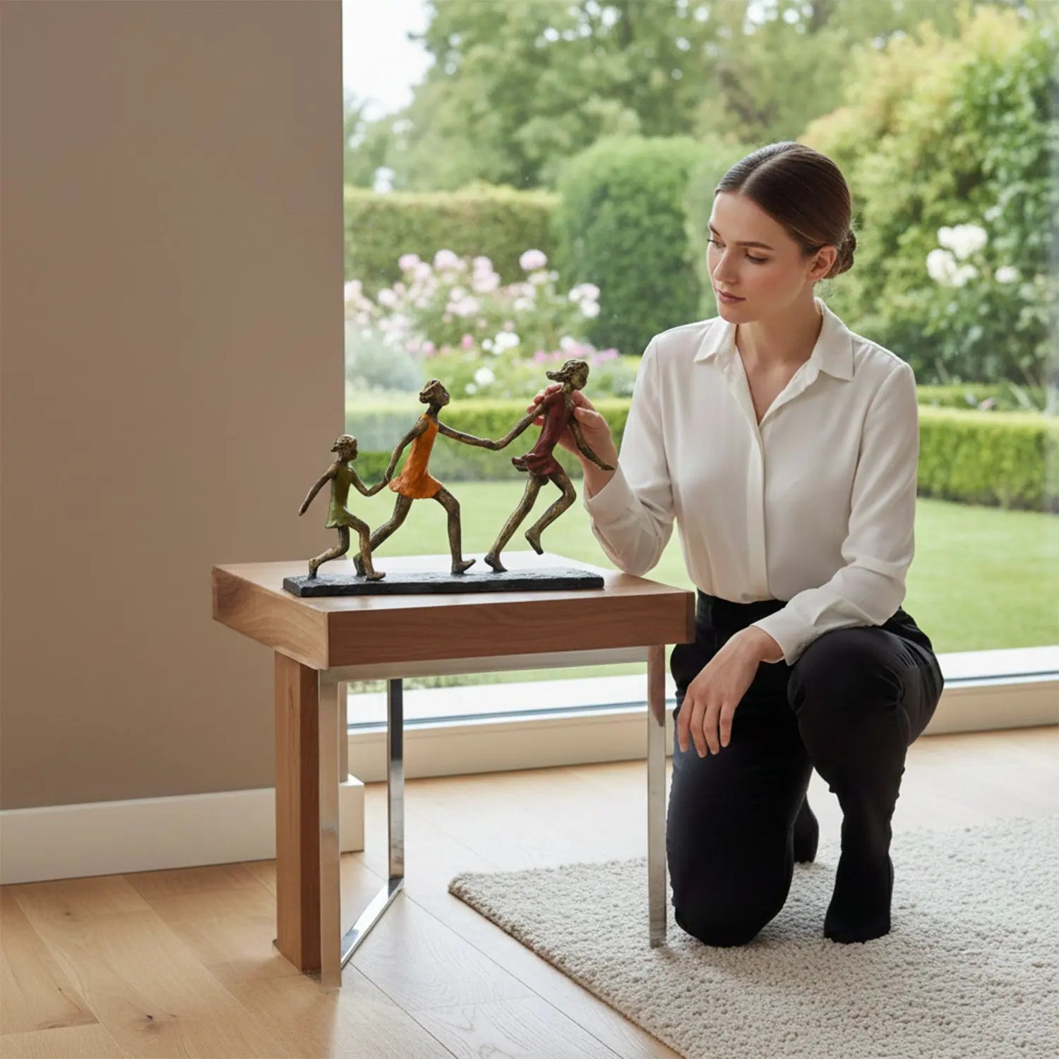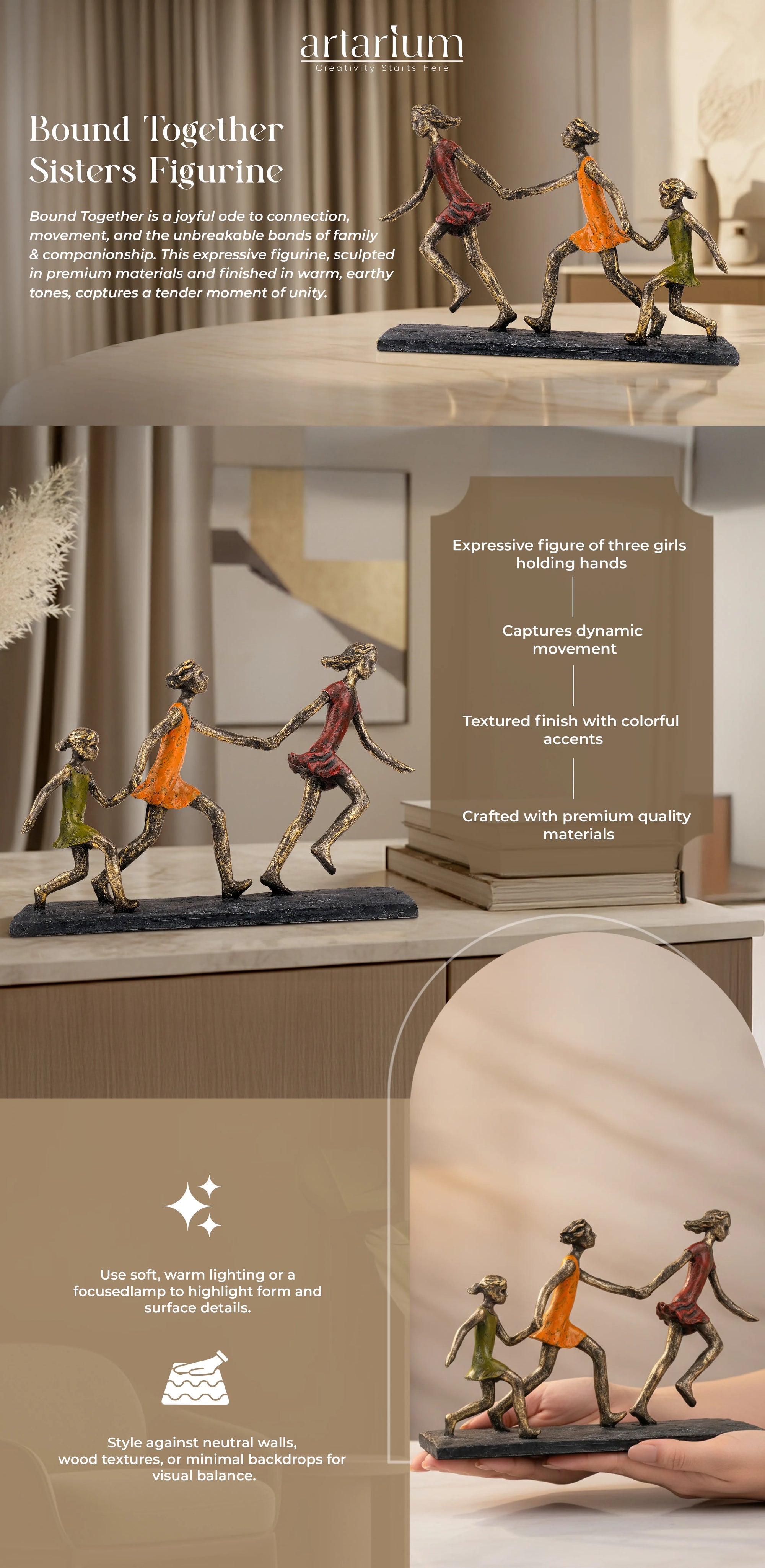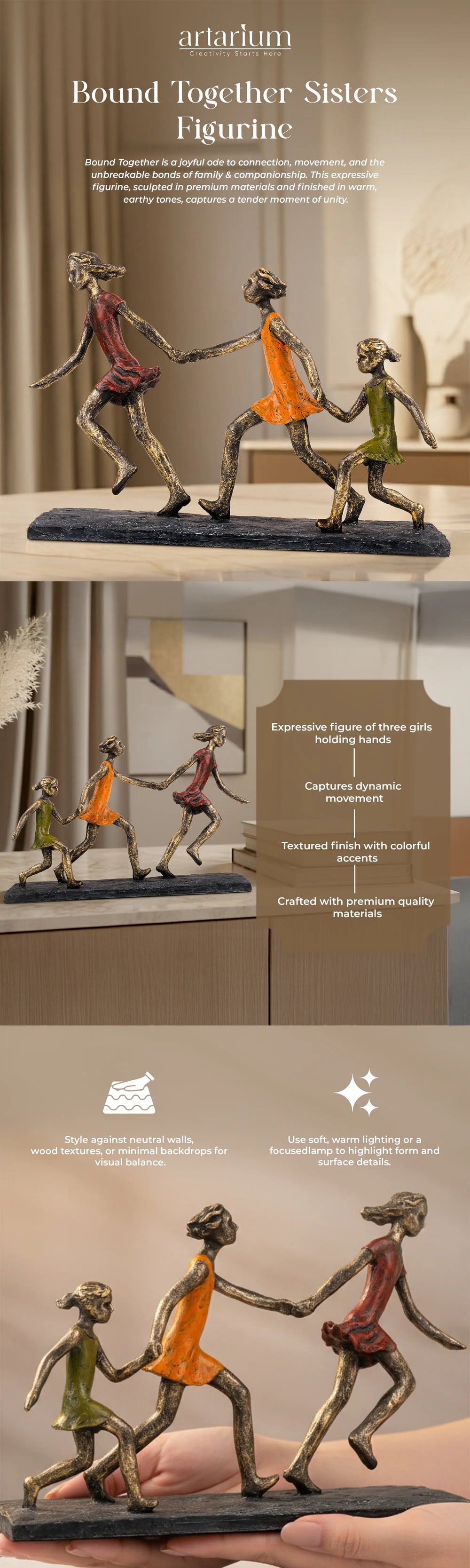 Bound Together is a joyful ode to connection, movement, and the unbreakable bonds of family & companionship. This expressive figurine, sculpted in premium materials and finished in warm, earthy tones, captures a tender moment of unity - three figures in motion, hand in hand, embodying the energy of trust and togetherness. Their forward stride symbolizes love in motion: playful, protective, and enduring. Perfect for family spaces, entryways, or curated shelves.