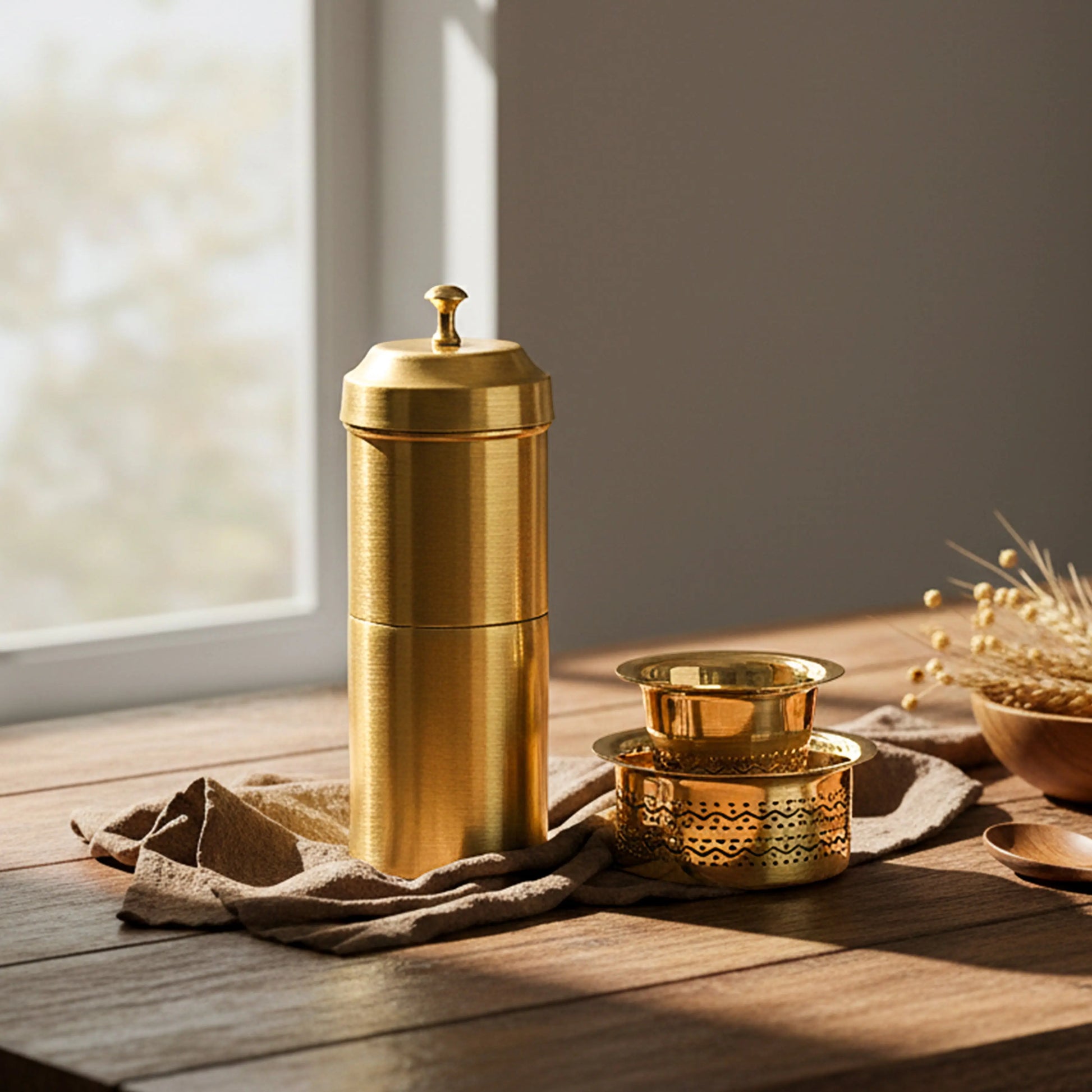 Start your day with the rich, earthy taste of coffee brewed in a Brass Filter Coffee Maker. Known for its traditional design, this filter allows your coffee to brew slowly, bringing out all the flavors and aromas. Whether you're a coffee connoisseur or just enjoy a cup to kickstart your day, this brass coffee filter ensures you get the perfect brew every time. Its durable construction makes it an ideal companion for daily use