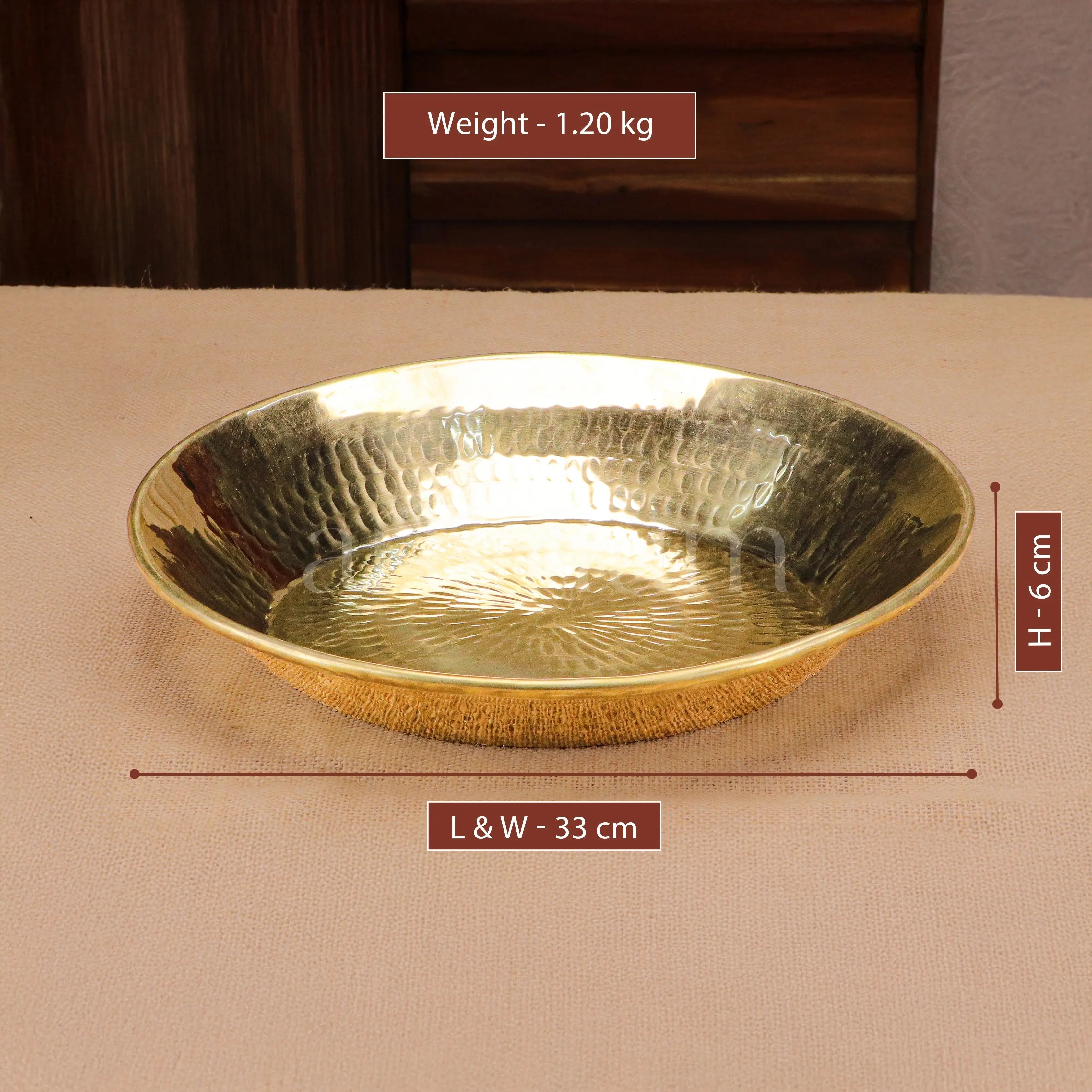 Bring home an essential part of every Indian kitchen, the Brass Paraat. Crafted carefully by expert artisans to make kneading dough feel like a breeze. A wide base gives you a good enough surface to test your skills and knead a large quantity of dough for making bread, roti, and other baked goods for your family. Made from solid brass, this pital paraat features an unmatched sturdiness, making it ideal for everyday use. Its shallow depth makes it a highly versatile utensil, ideal for making batter, sauces, and dips or mixing spices.