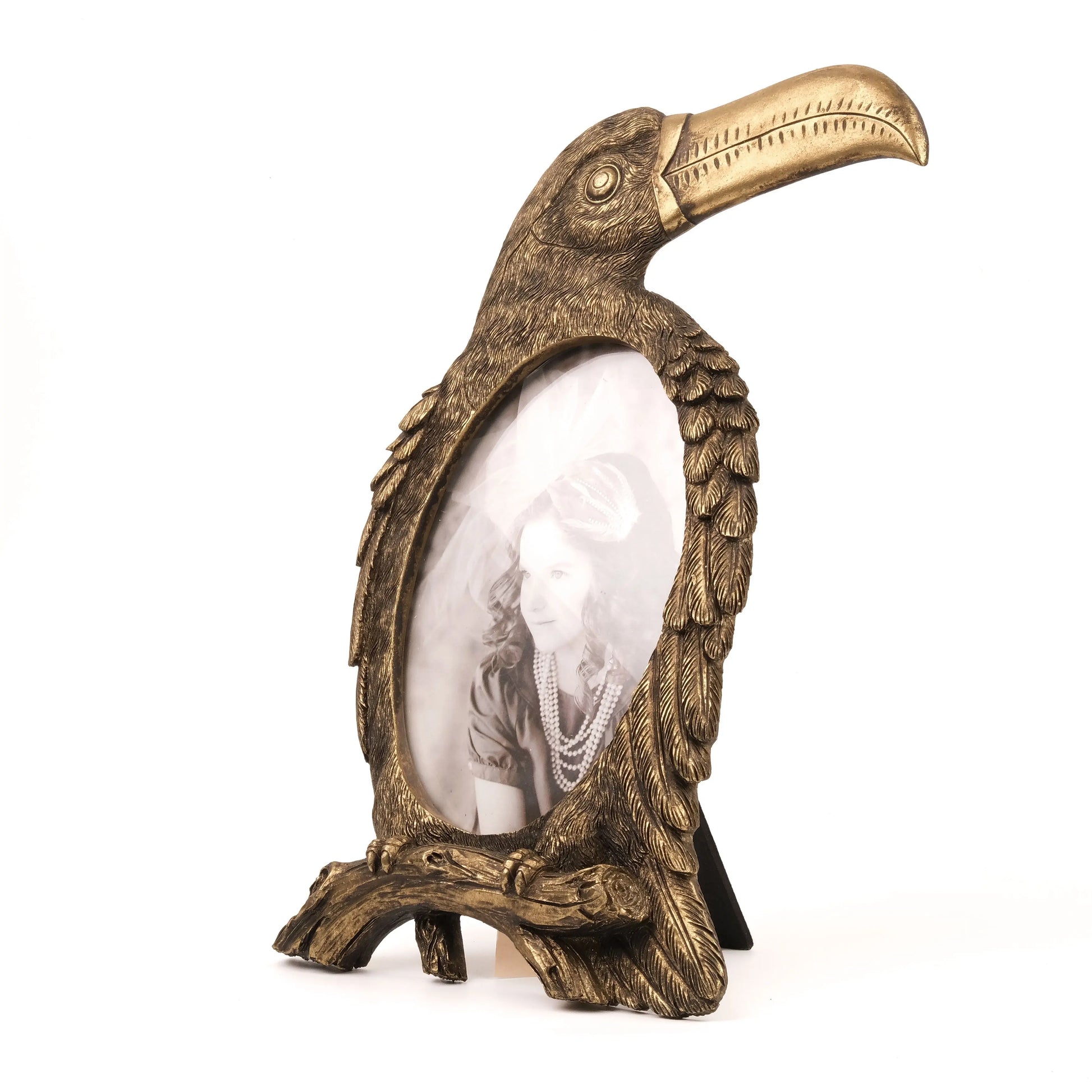A striking blend of elegance and character, Golden Toucan is an antique-style frame shaped like a toucan perched in golden glory. Intricately detailed and finished in a rich antique gold tone, it adds a touch of the exotic to your home décor, making for a statement accent that will leave your guests in awe. Showcase your cherished memories or adorn as a standalone statement accent.