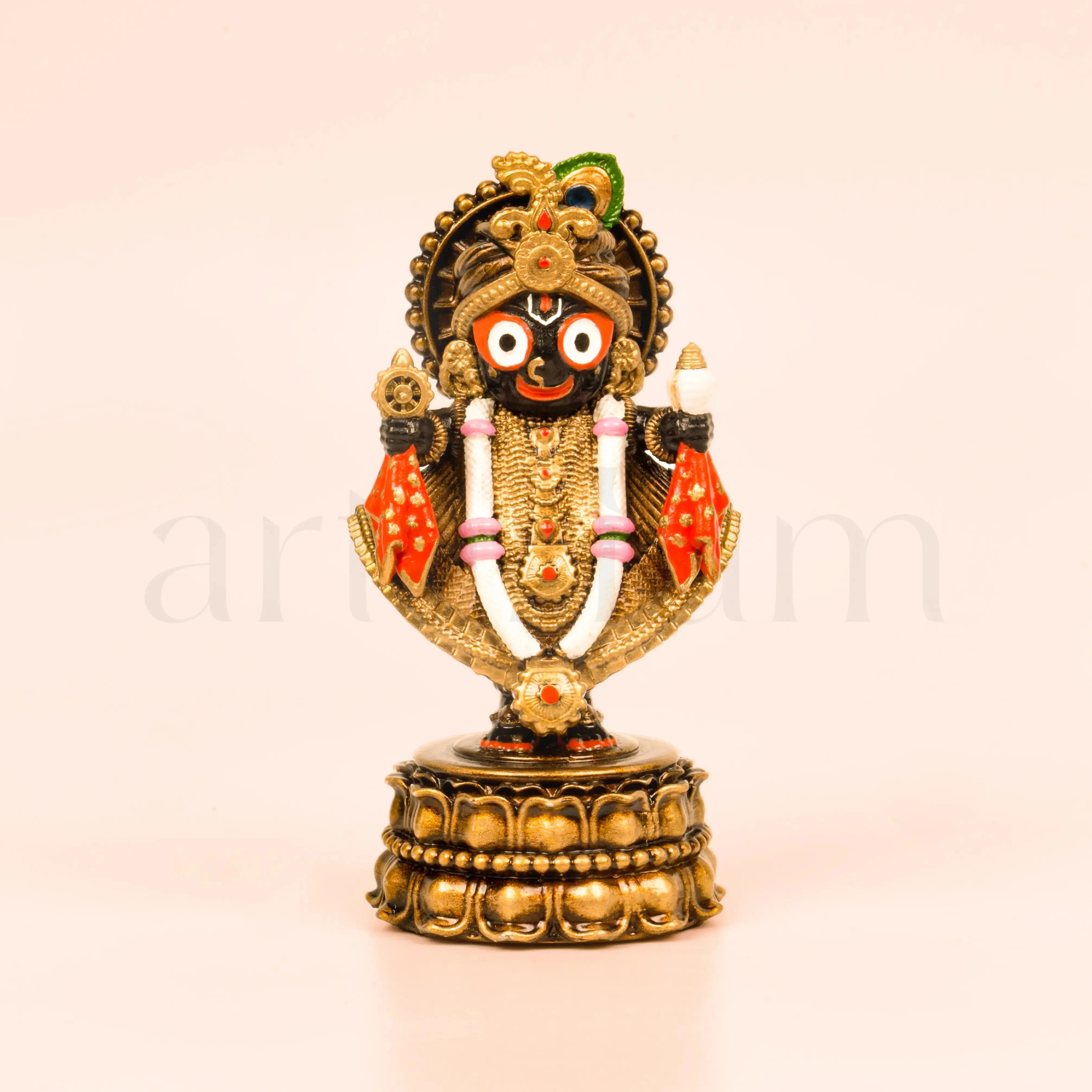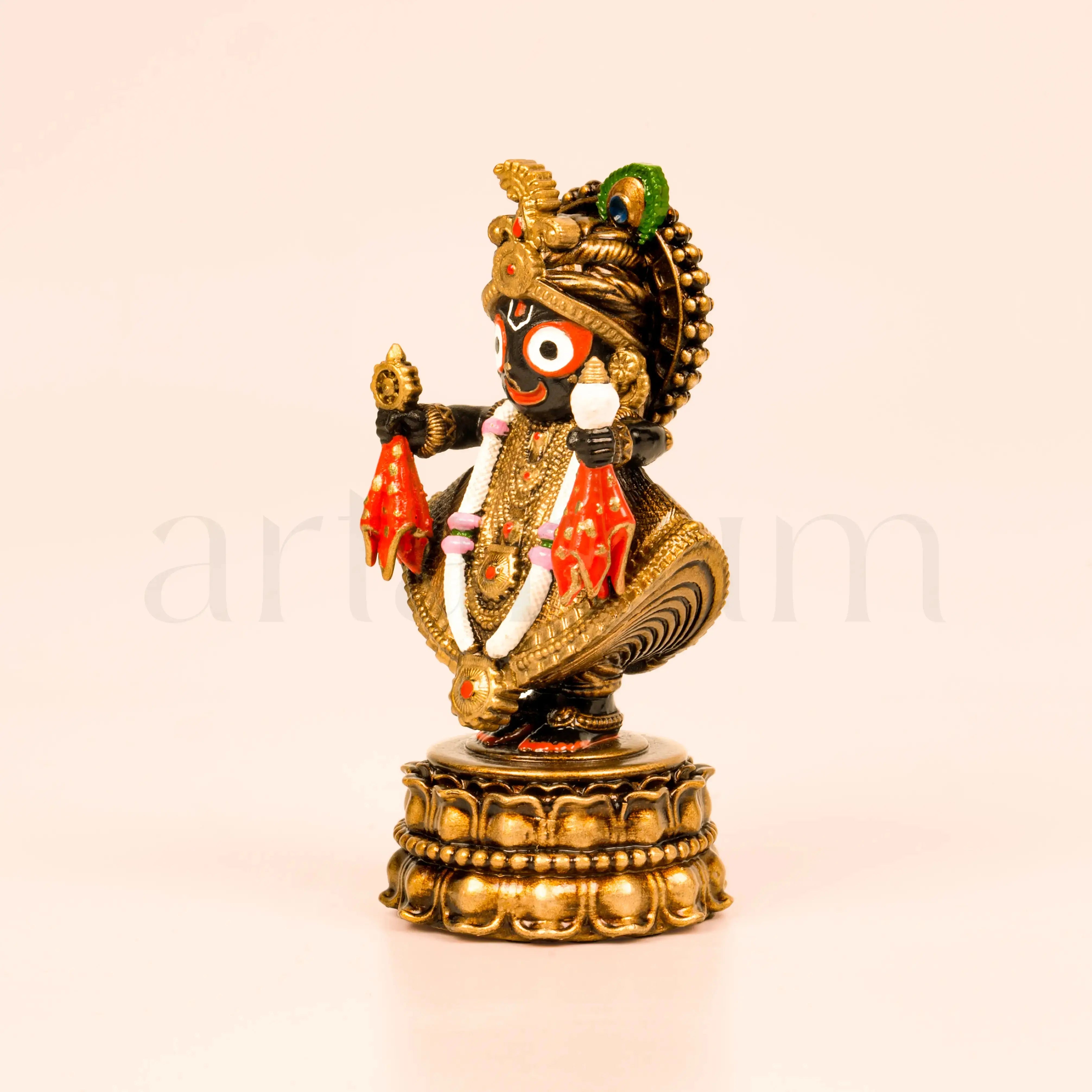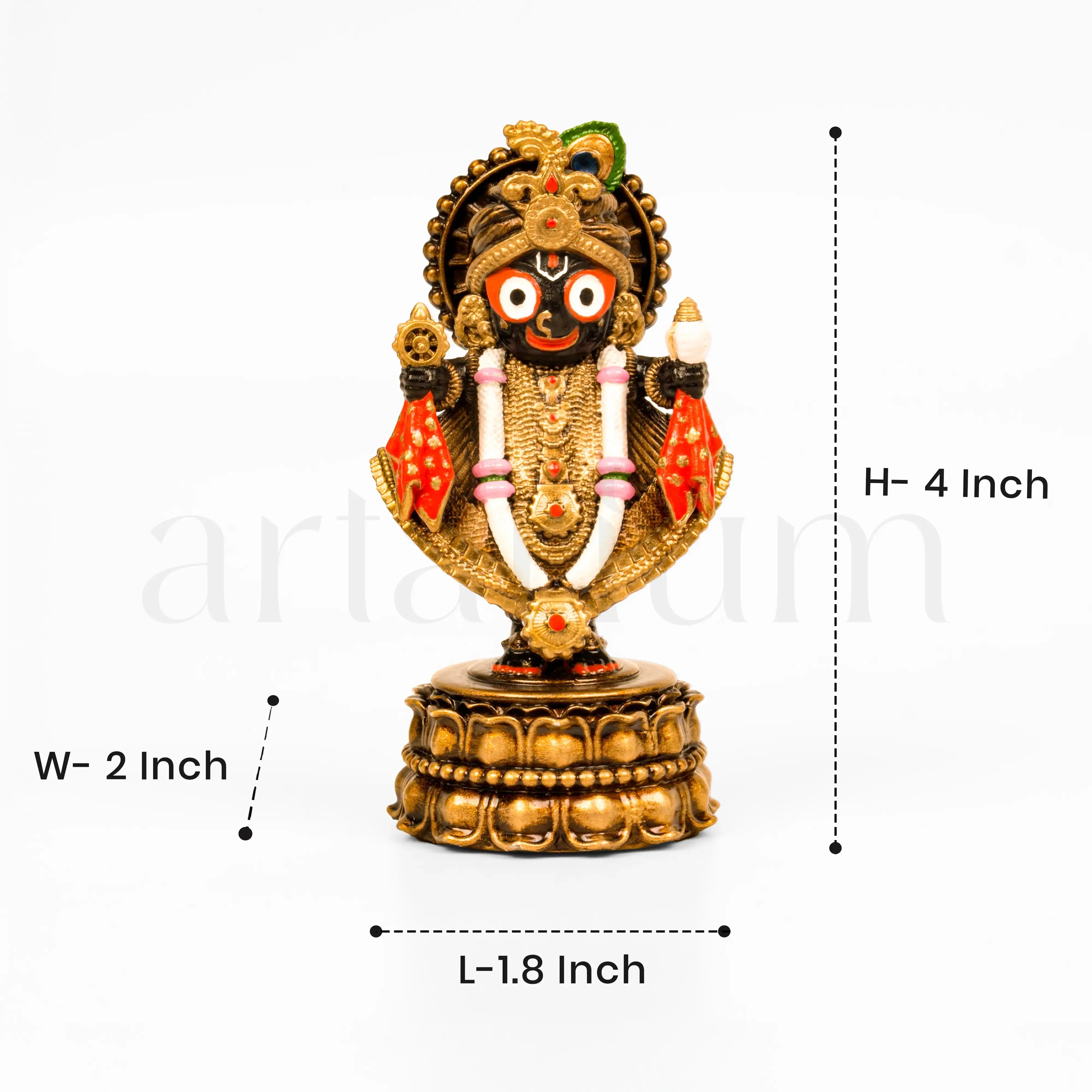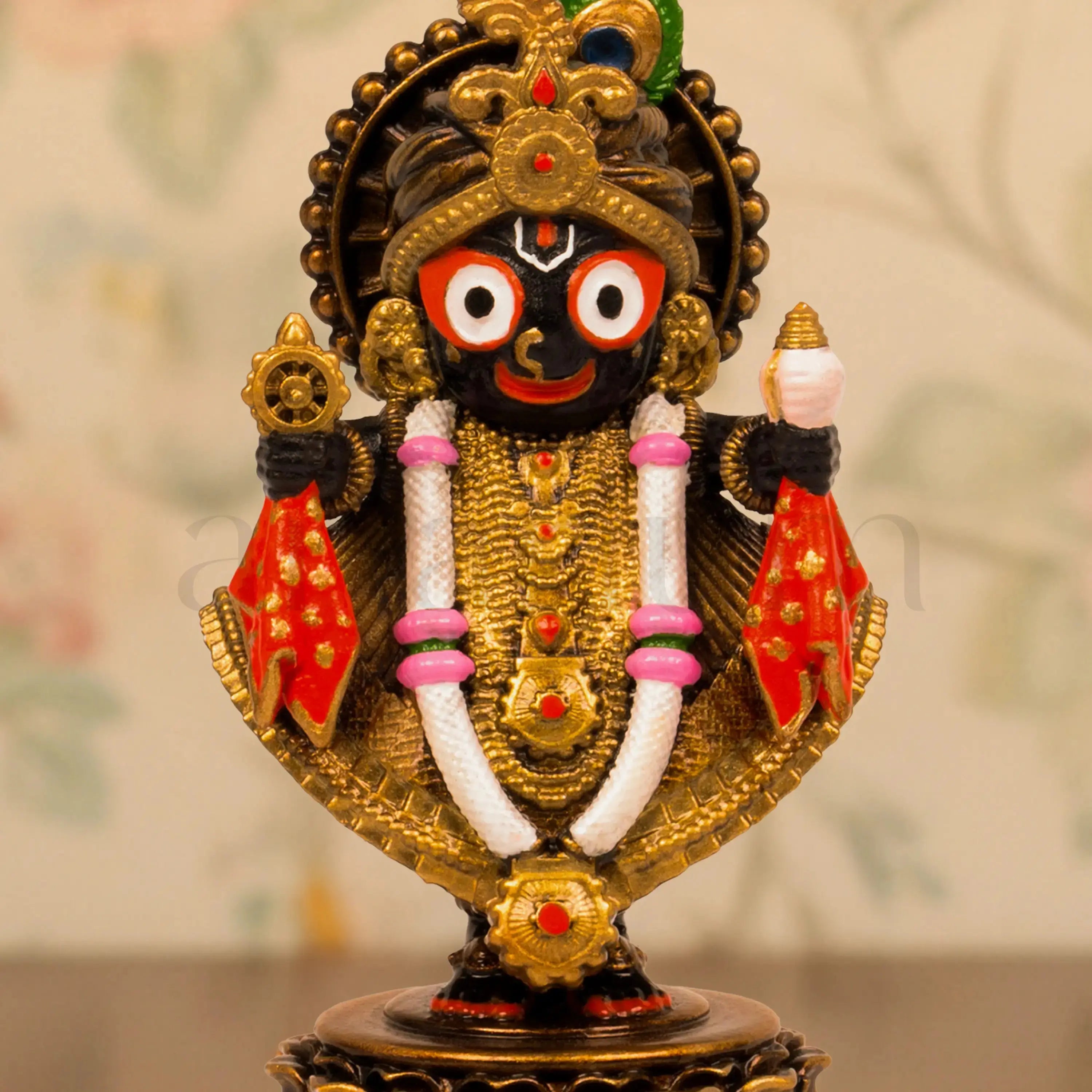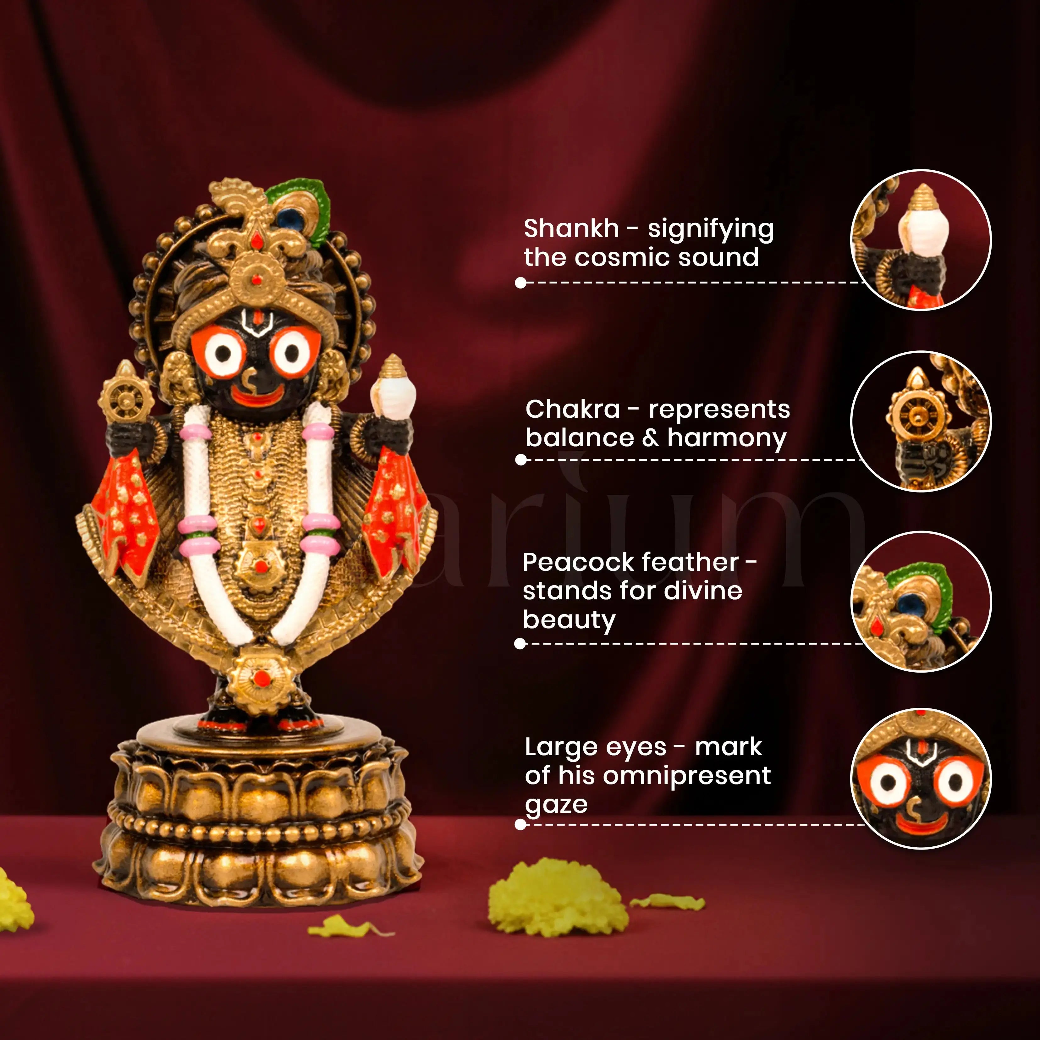 Adorn your home with the grandeur and grace of our Jagannath Ji Idol. Beautifully crafted and expertly detailed, this statue brings to form the iconic deity from the heart of Puri. With those attention-holding round eyes that watch over everything, captivating symbols that sing of his divinity, and dark skin that represents he’s beyond human comprehension, this idol is designed to make a sacred statement in any setting. Perfect for your home temple, meditation corner, or as a spiritual gift, the Jagannath Ji idol brings positivity no matter where it's kept.