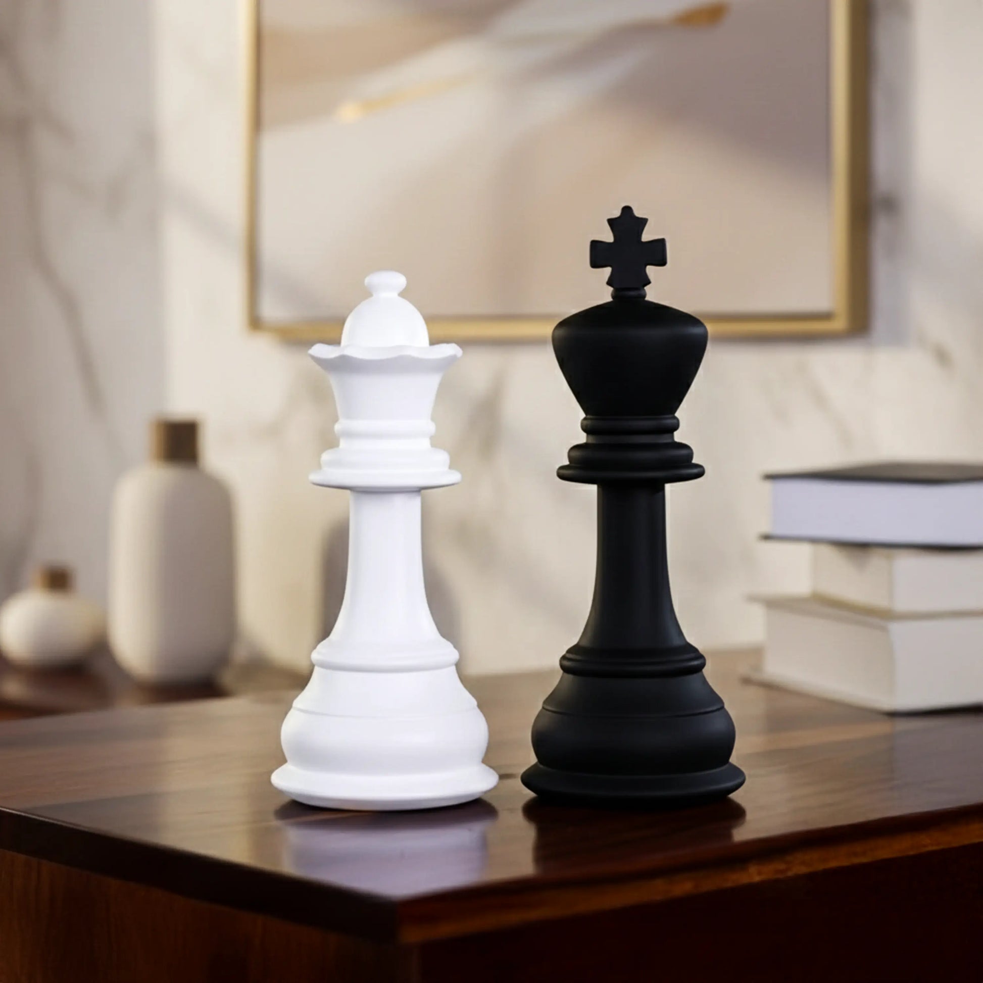 Introducing the epitome of luxury home decor: The King and Queen Chess Piece Set from The Artarium. Crafted with meticulous attention to detail, these stunning pieces exude sophistication and refinement. The King Chess Piece captivates with its fine contours and regal aura, while the Queen Chess Piece charms with its timeless elegance. Together, they create a harmonious blend of beauty, elevating any space to new heights of opulence. Indulge in the perfect union of luxury and artistry with our King and Queen Chess Piece Set.