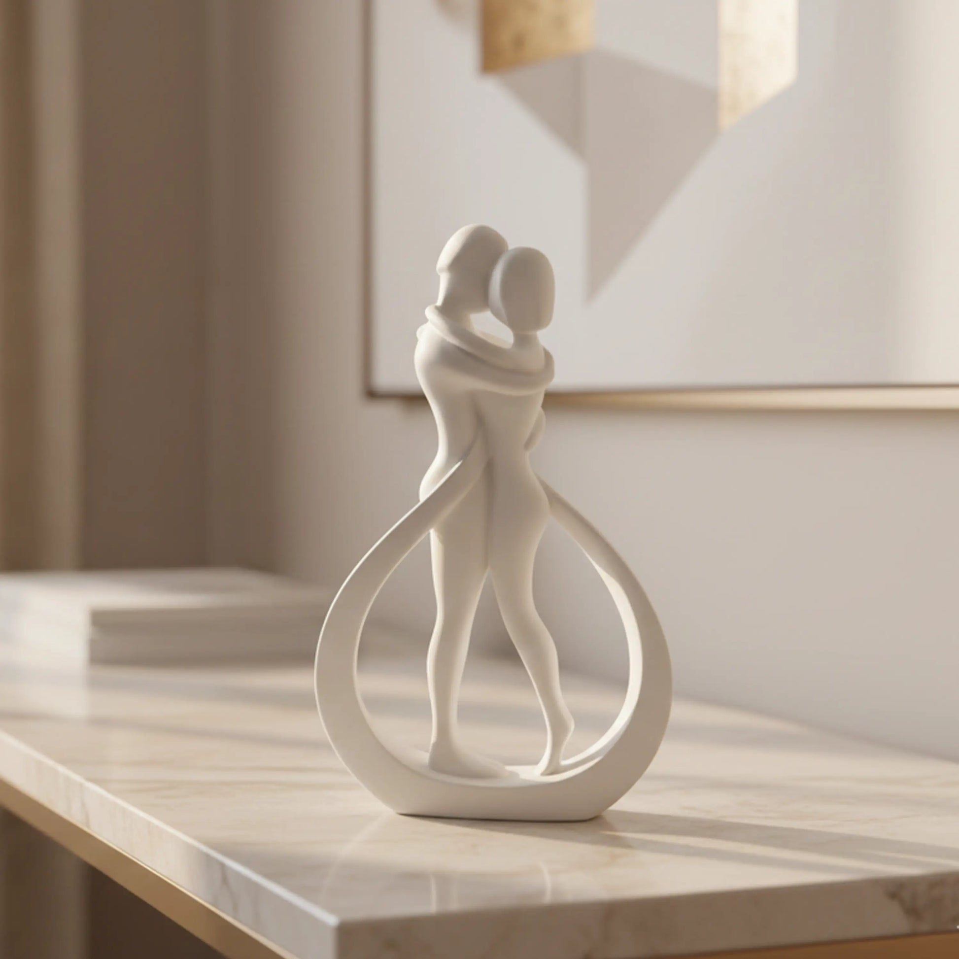 The Kissing Couple statue is the magic touch every space deserves. Made from premium materials and brought to life by skilled craftsmen, this beautiful showpiece depicts two lovers in a warming embrace - symbolizing the power of love. With a sleek form and smooth surface, the showpiece strikes the right balance between abstract but meaningful. Its sturdy base allows it to stand firmly on any platform and two sophisticated colors help you transform any part of your home with heartfelt imagery.