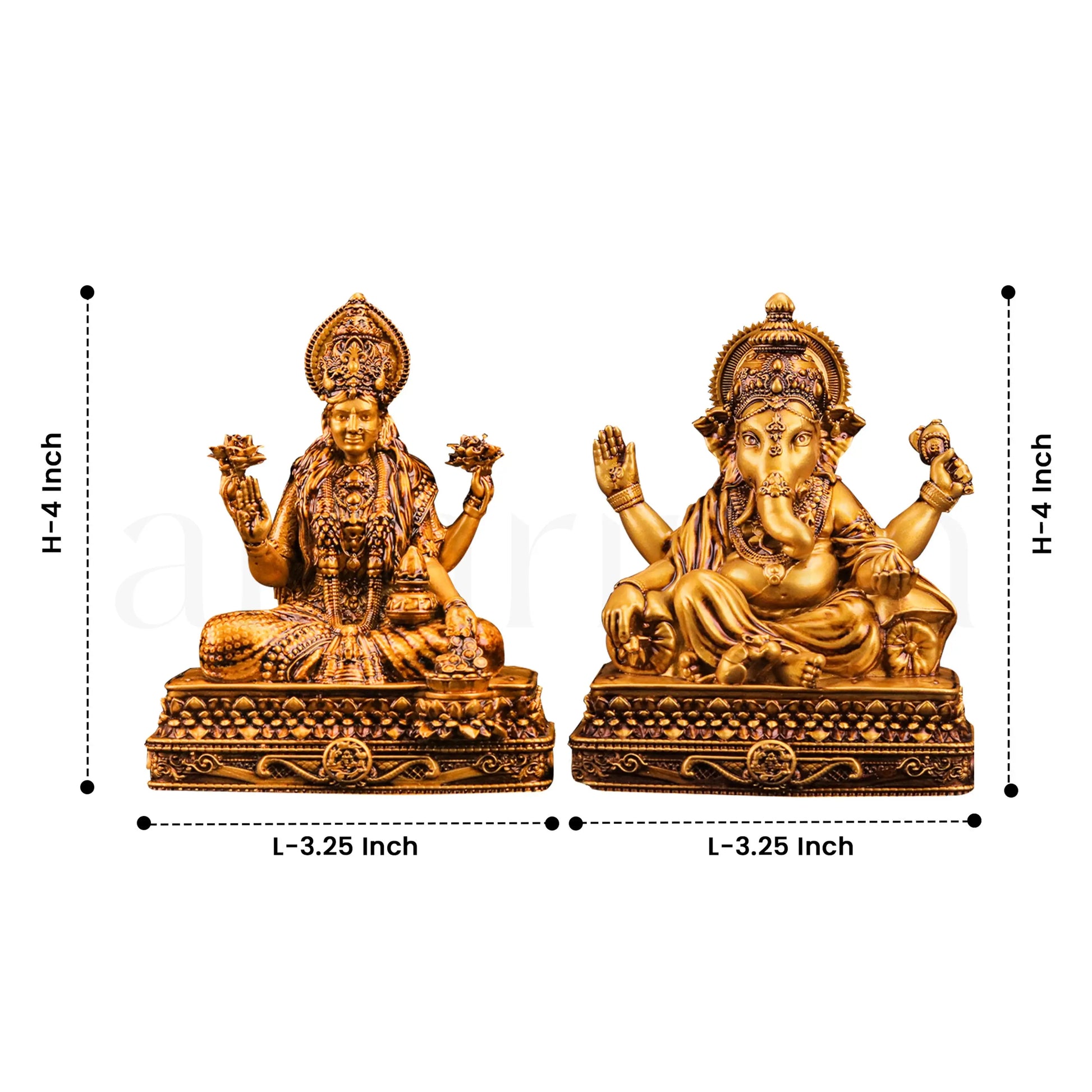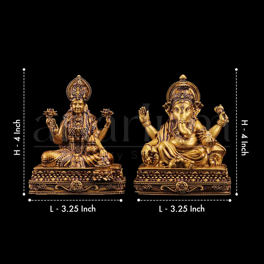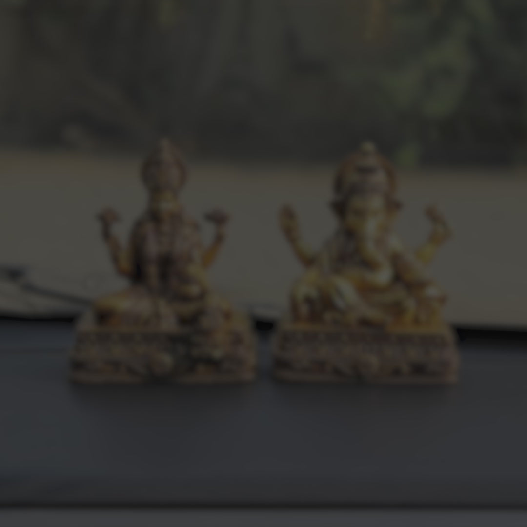 Introducing the Laxmi Vinayak Car Dashboard Idols Set from The Artarium, the perfect duo to bring blessings of wealth, wisdom, and protection into your vehicle. This beautifully crafted set features Goddess Laxmi statue, the divine symbol of prosperity, seated gracefully on a chowki (stool), radiating grace and abundance, alongside Lord Ganesha, the remover of obstacles, also seated on a chowki, offering protection and guidance on your journeys.