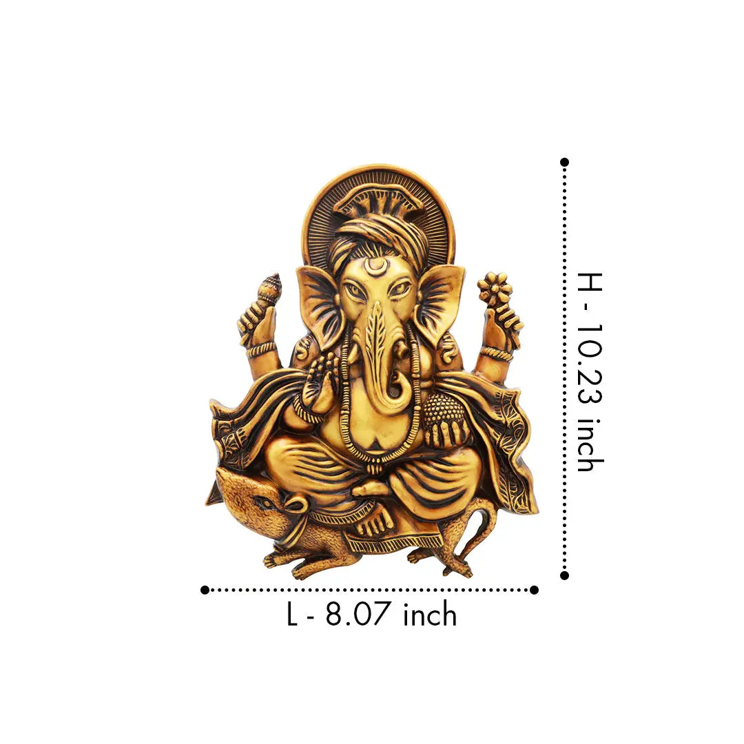The Lord Ganesha on the Mushak wall hanging is made of resin, a durable and long-lasting material that can withstand the test of time. The figurine is intricately crafted with attention to detail to capture the essence of Lord Ganesha's personality and his close association with the Mushak or the mouse. The antique finish adds a touch of rustic charm and elegance to the art piece, making it an ideal choice for those who appreciate art and spirituality.