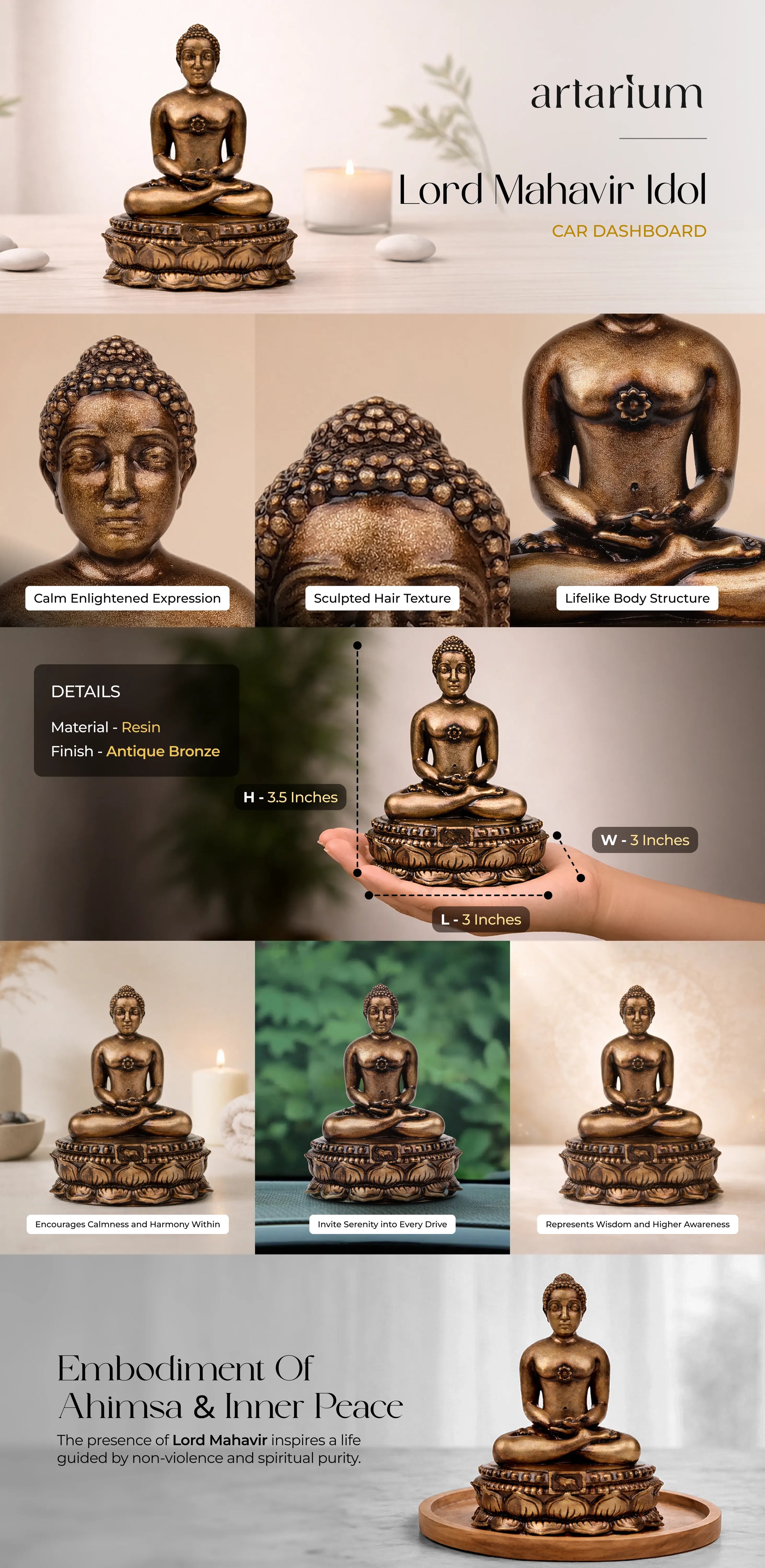 Perfect for Jain devotees, spiritual car decor, dashboard idols, and meditation statues, this Artarium idol is also a thoughtful gift for peace and protection during travel.