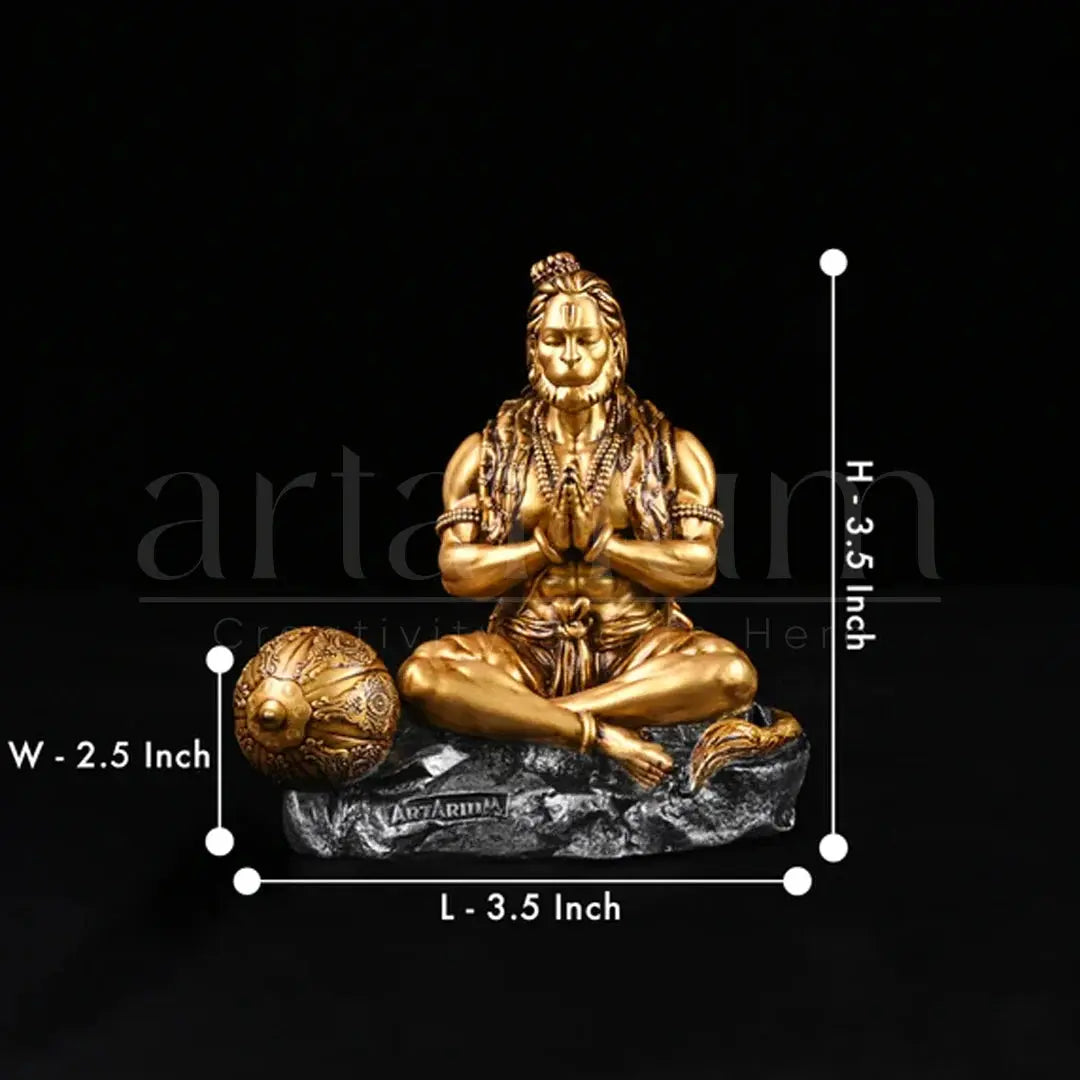 Enhance your car journeys with the divine presence of the "Mahabali Lord Hanuman Idol". This exquisite Hanuman idol for car dashboard showcases Lord Hanuman sitting gracefully on a rock pedestal with folded hands, fully engrossed in devotion. Beside him is his powerful weapon, the Gada (Mace), symbolising strength and protection.
