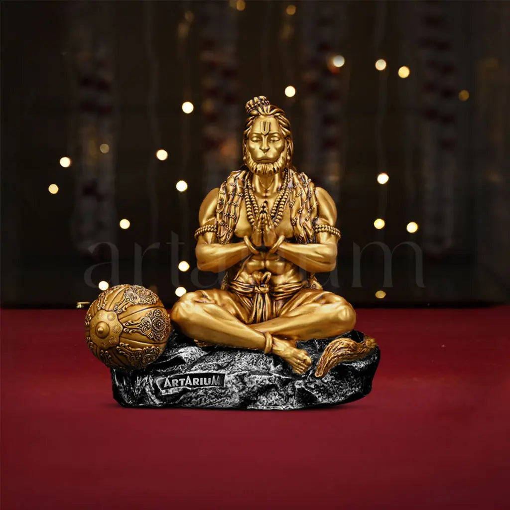 Experience devotion in its finest form with our Mahabali Lord Hanuman Statue & Gada Idol Set - featuring a pair of powerful idols depicting calmness, belief, and strength like nothing else. The set has been handpicked thoughtfully to bring the revered energy of Lord Hanuman into your space.