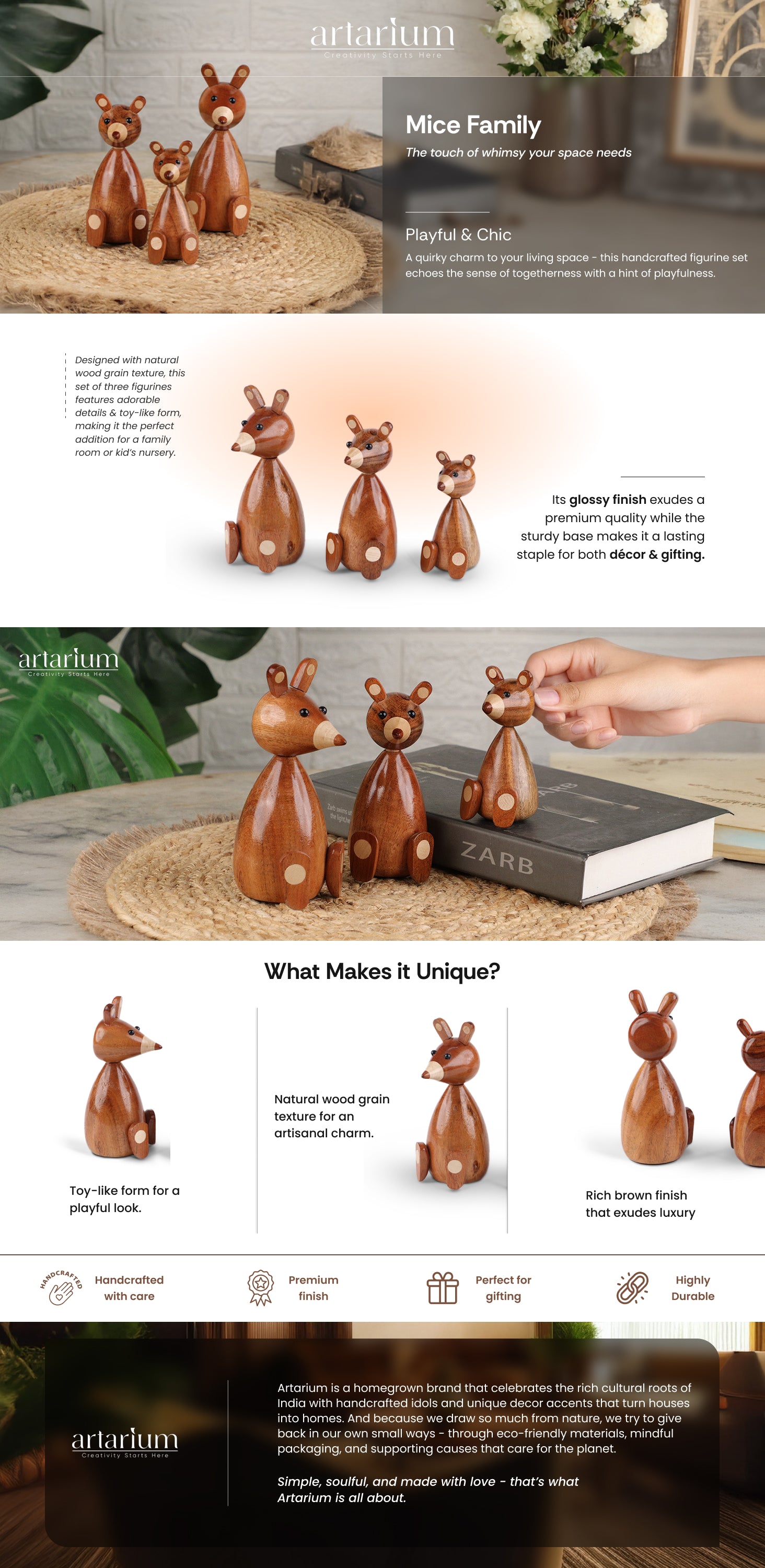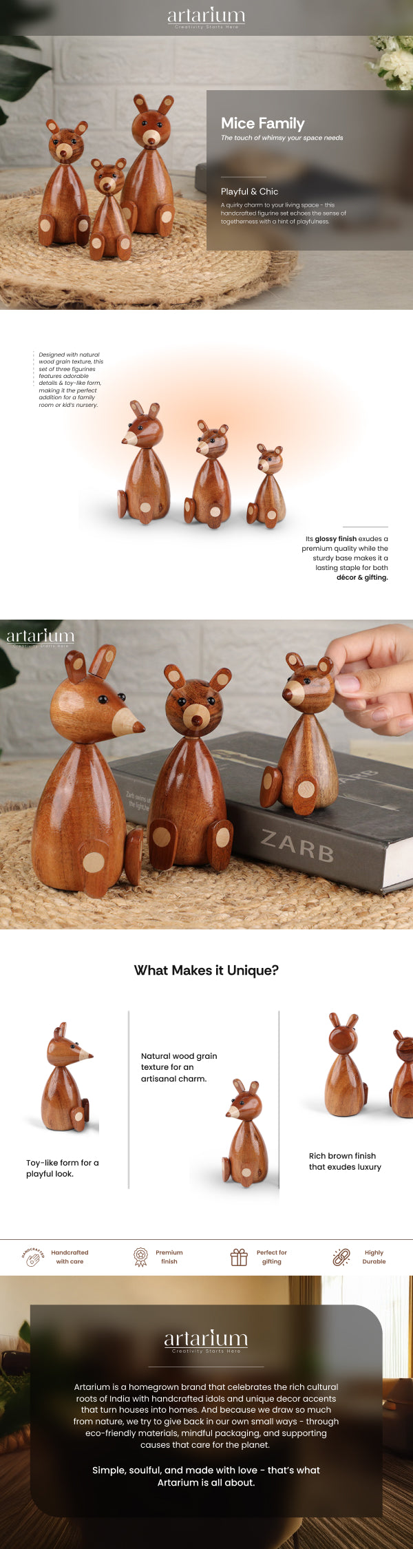 Let nature’s cute creatures bring a sense of cosiness to your space. These Mice Family (Set of 3) are made from the finest wood and carved with precision to be a cherished addition, no matter where you place them. Each one is carefully polished by skilled artisans, bringing a touch of instant warmth, whimsy, and woodland charm.