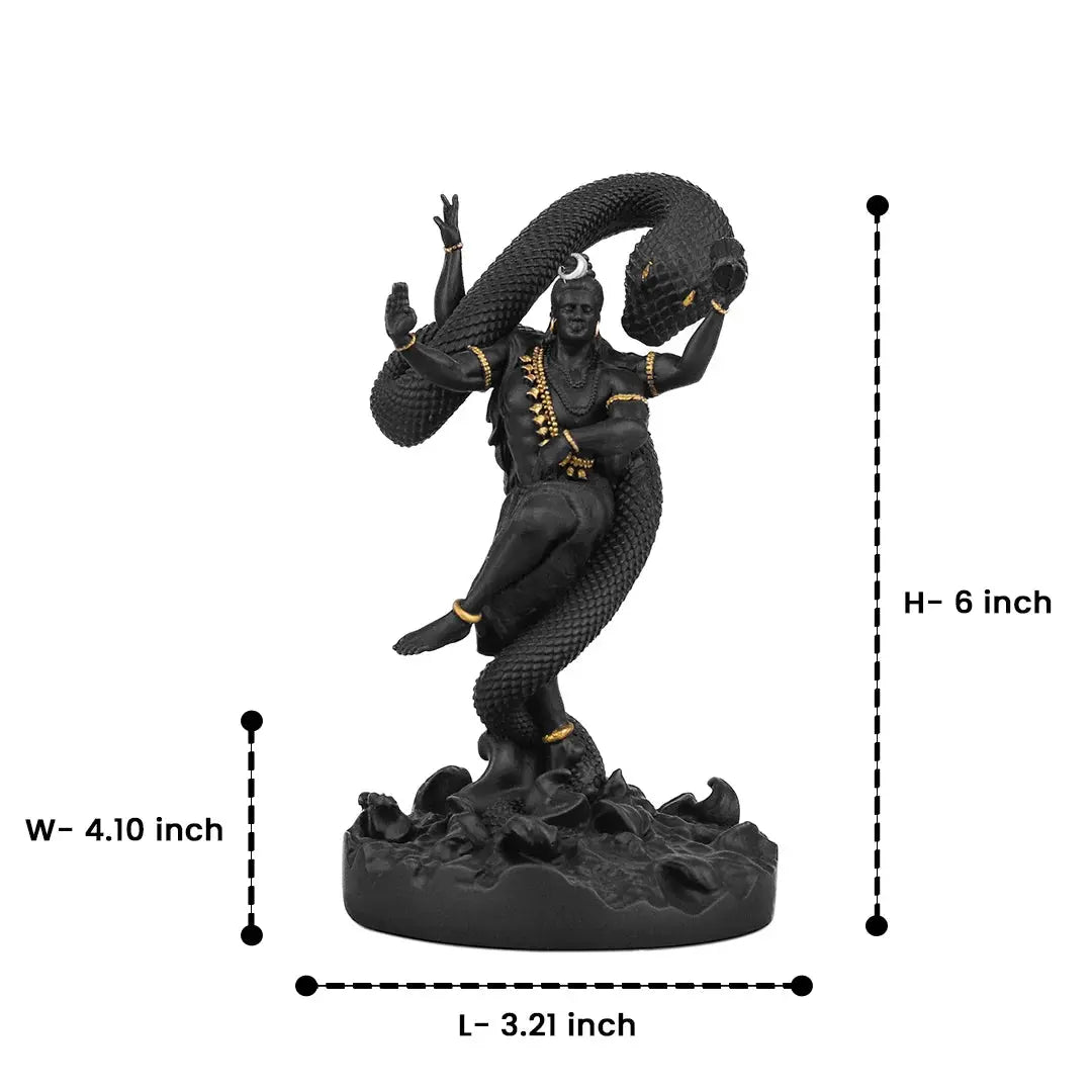Presenting the Mystical Shiva figurine in an exquisite black variant, adorned with intricate golden colour ornaments that elevate its divine presence. Standing gracefully at 6 inches tall, this finely crafted masterpiece showcases Lord Shiva in a celestial pose, embodying the eternal dance of creation and destruction.