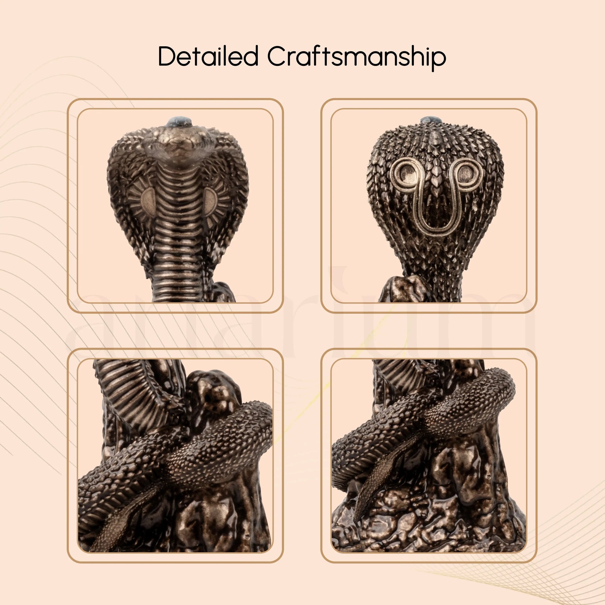 This idol portrays the sacred serpent rising with calm yet powerful energy, symbolising alertness, protection, and divine presence. Handcrafted with the finest materials, in detailed textures, it carries a traditional charm that instantly draws attention. Available in two beautifully crafted variants, it's perfect for any sacred space.