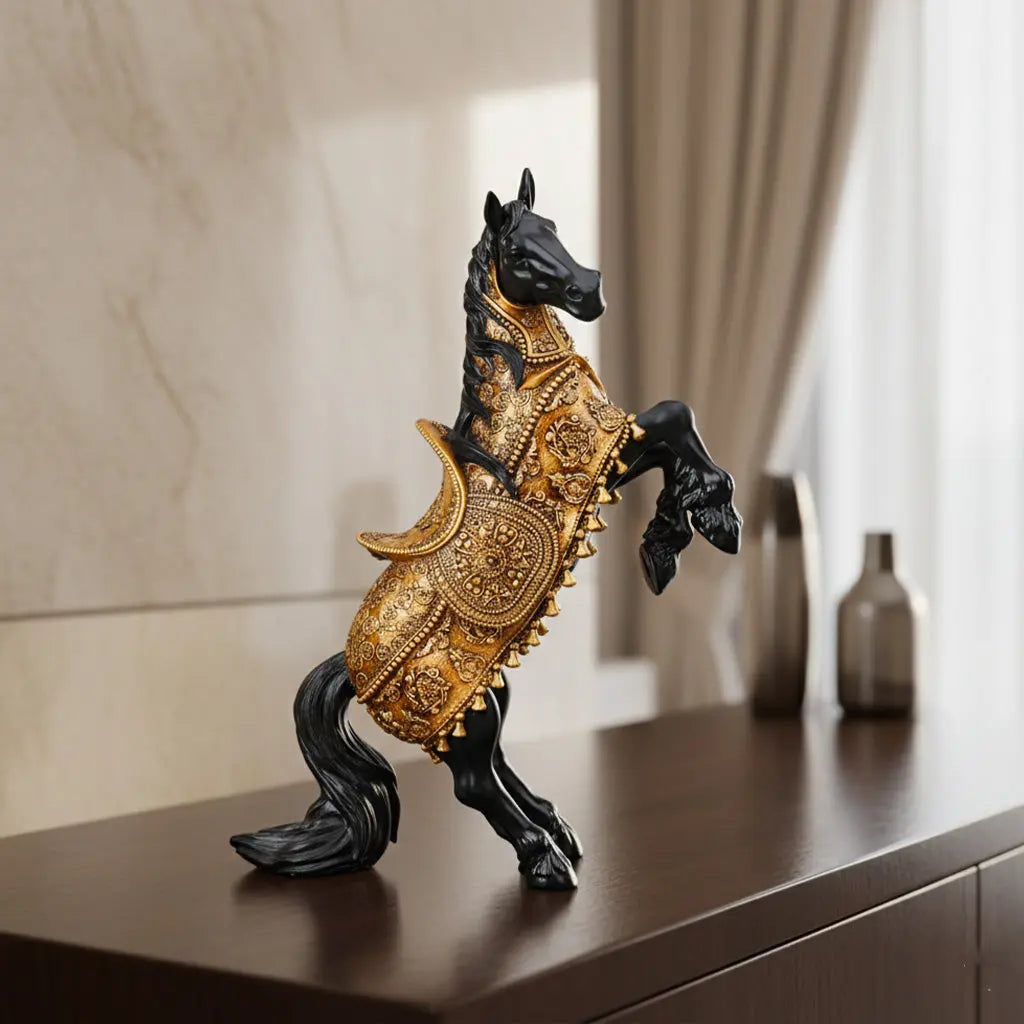 The Rising Horse Statue is a beautiful art piece, featuring a horse in mid-leap with a flowing mane and tail. Horses are considered to be powerful symbols of success and good fortune. The Rising horse, in particular, is believed to represent overcoming obstacles and achieving great heights. More so, its intricate design and unique build enhance the overall appeal of your space.