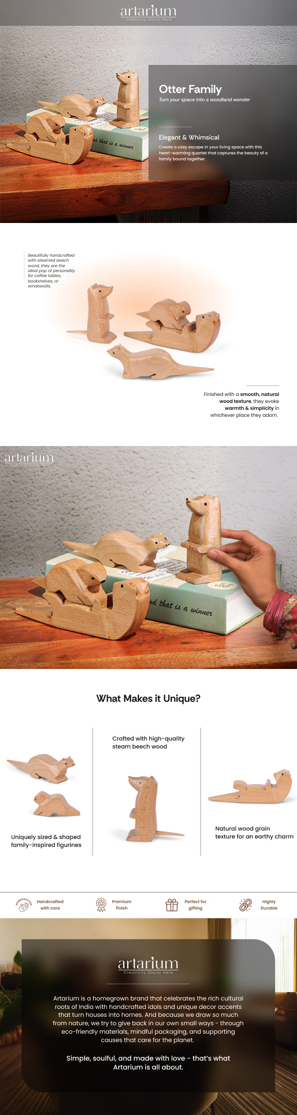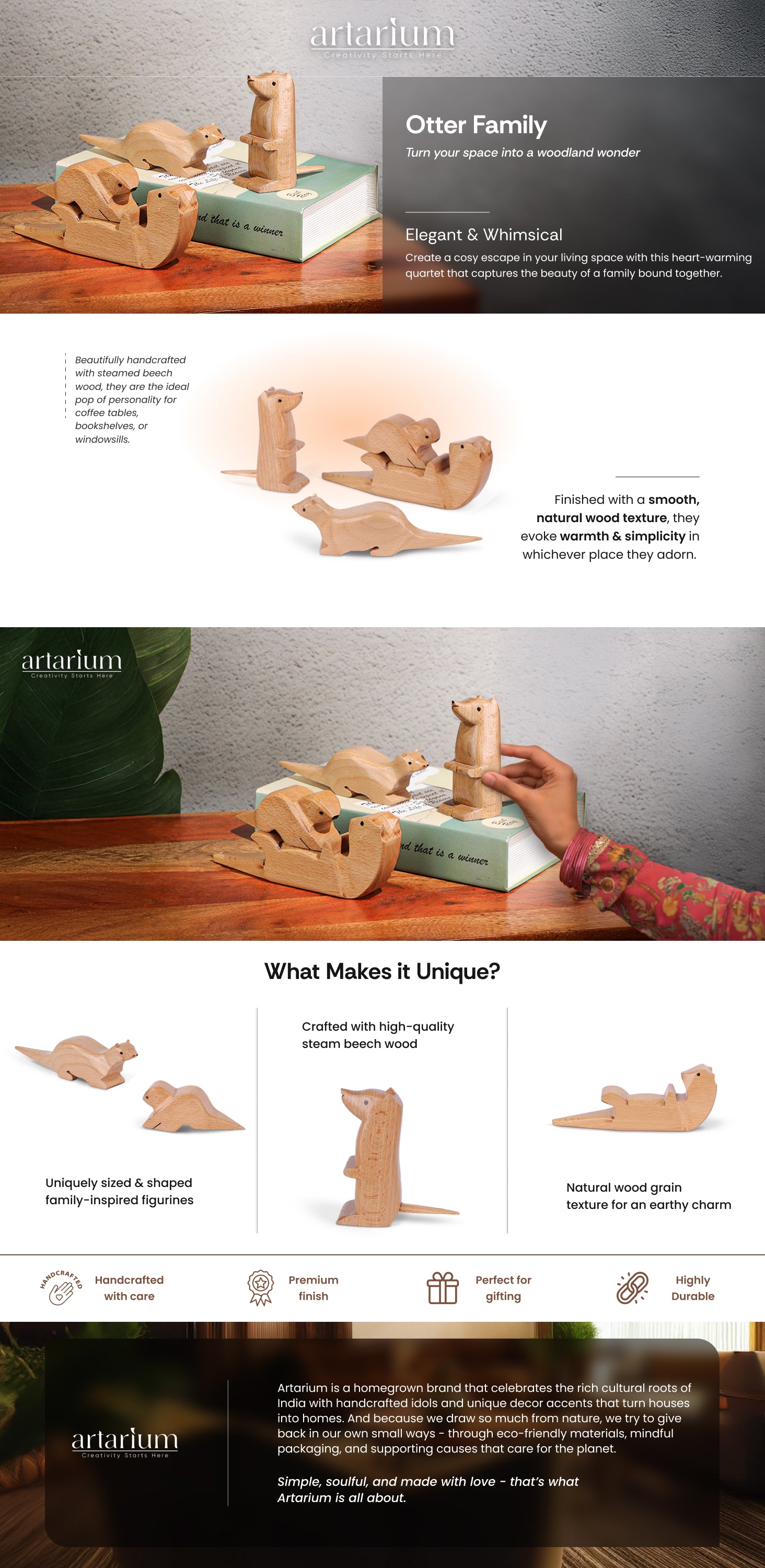 Give any space a makeover with the Wooden Otter figurines. These beautifully crafted pieces fill your space with a playful energy thanks to their lifelike postures and curious expressions. Built from quality wood in a show of skilled craftsmanship, these wooden decorative items celebrate the beauty of friendship, togetherness, and family.