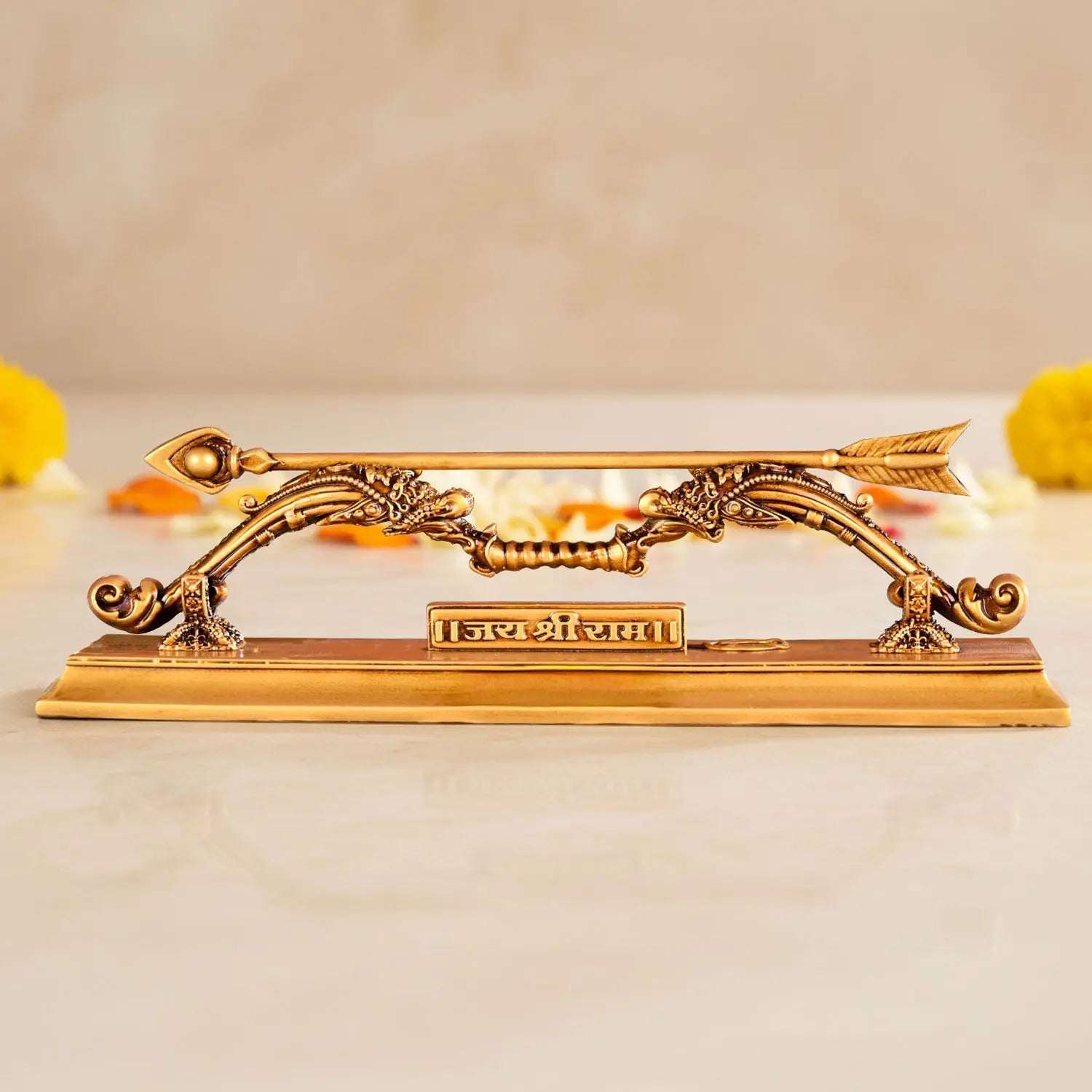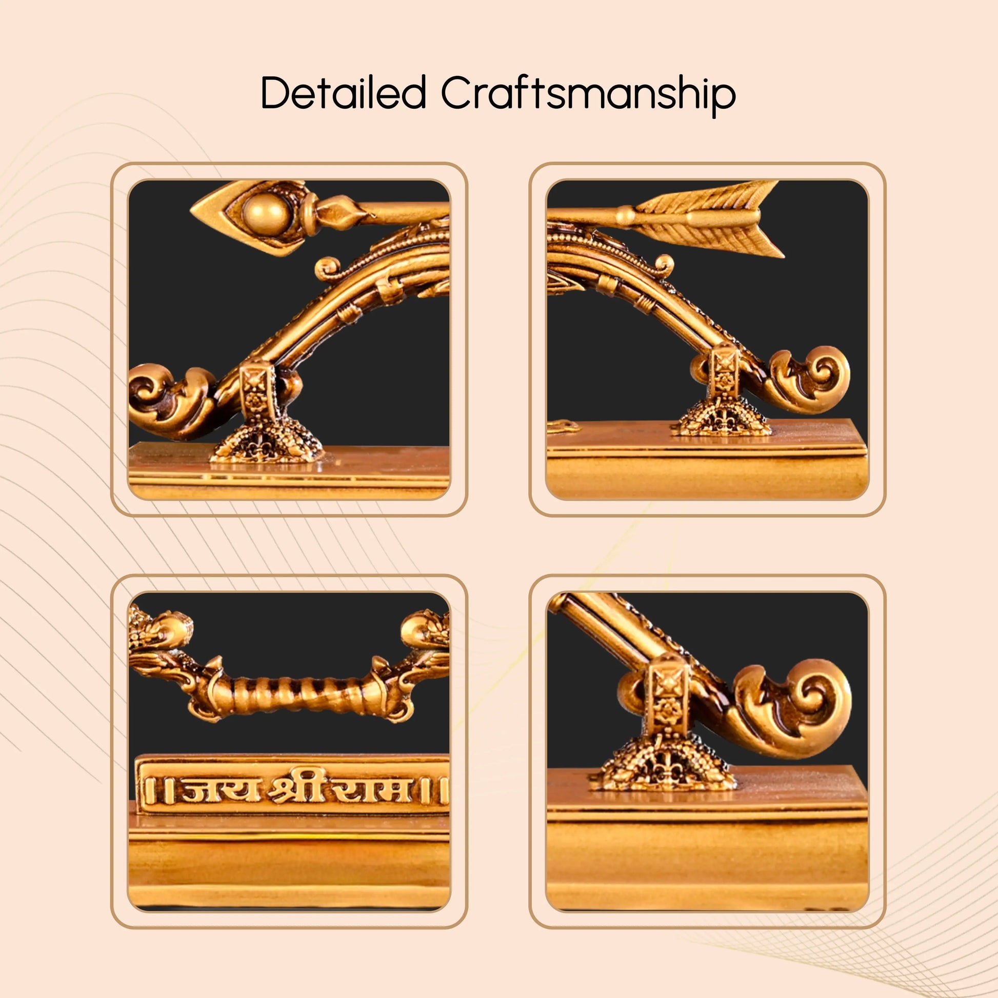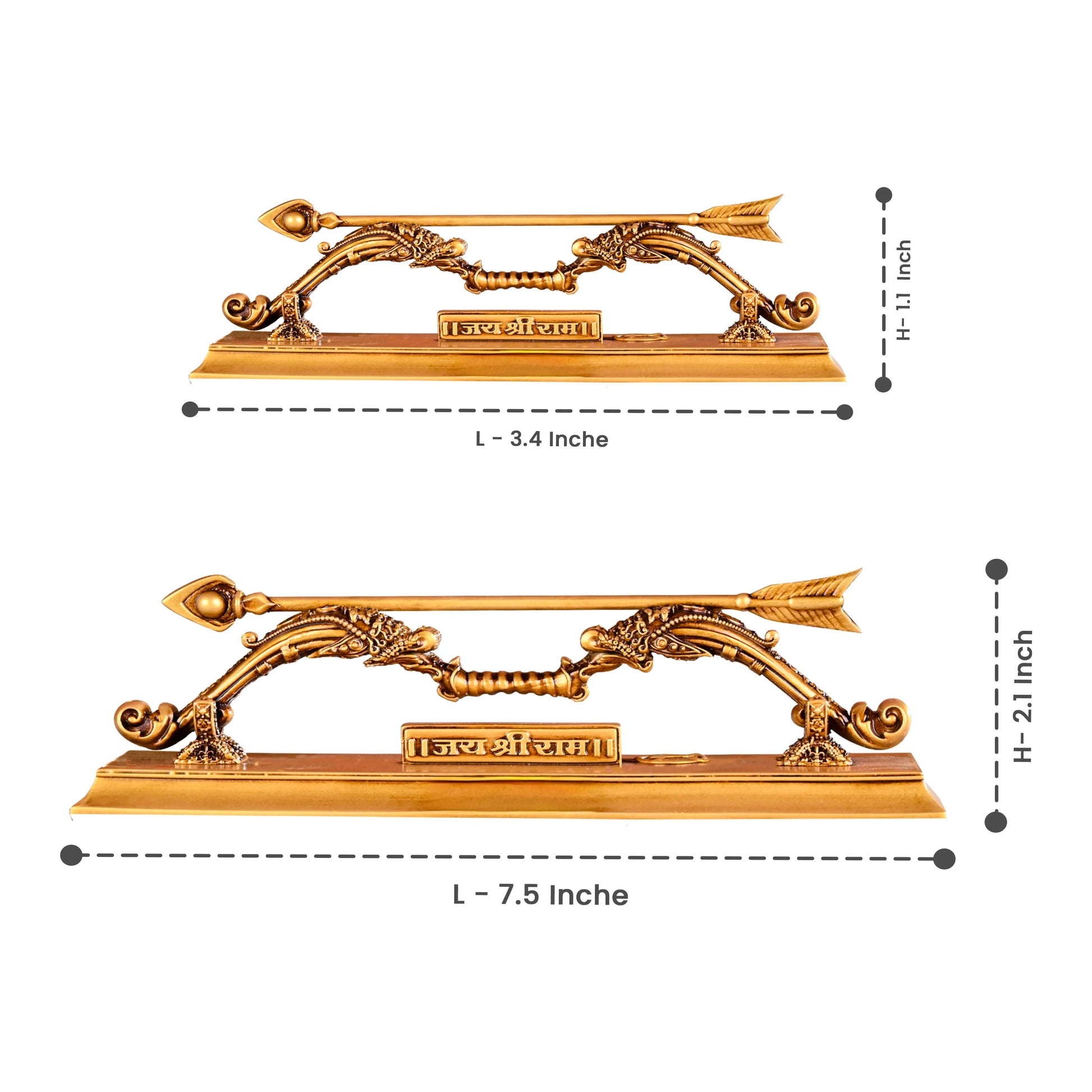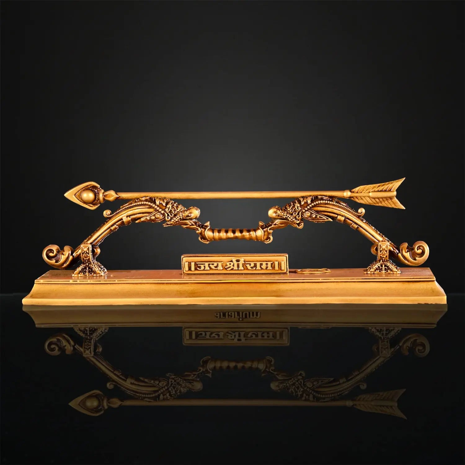 Crafted with utmost care and precision, the Ram Dhanush is not just a bow and arrow; it's a masterpiece of artistry. Each intricate detail tells a story of dedication and skill, lovingly handcrafted to perfection.Adorned with the sacred words "Jai Shree Ram," this divine weapon embodies the spirit of strength, courage, and faith. It's more than just a symbol – it's a reminder of the power within us to overcome any obstacle.