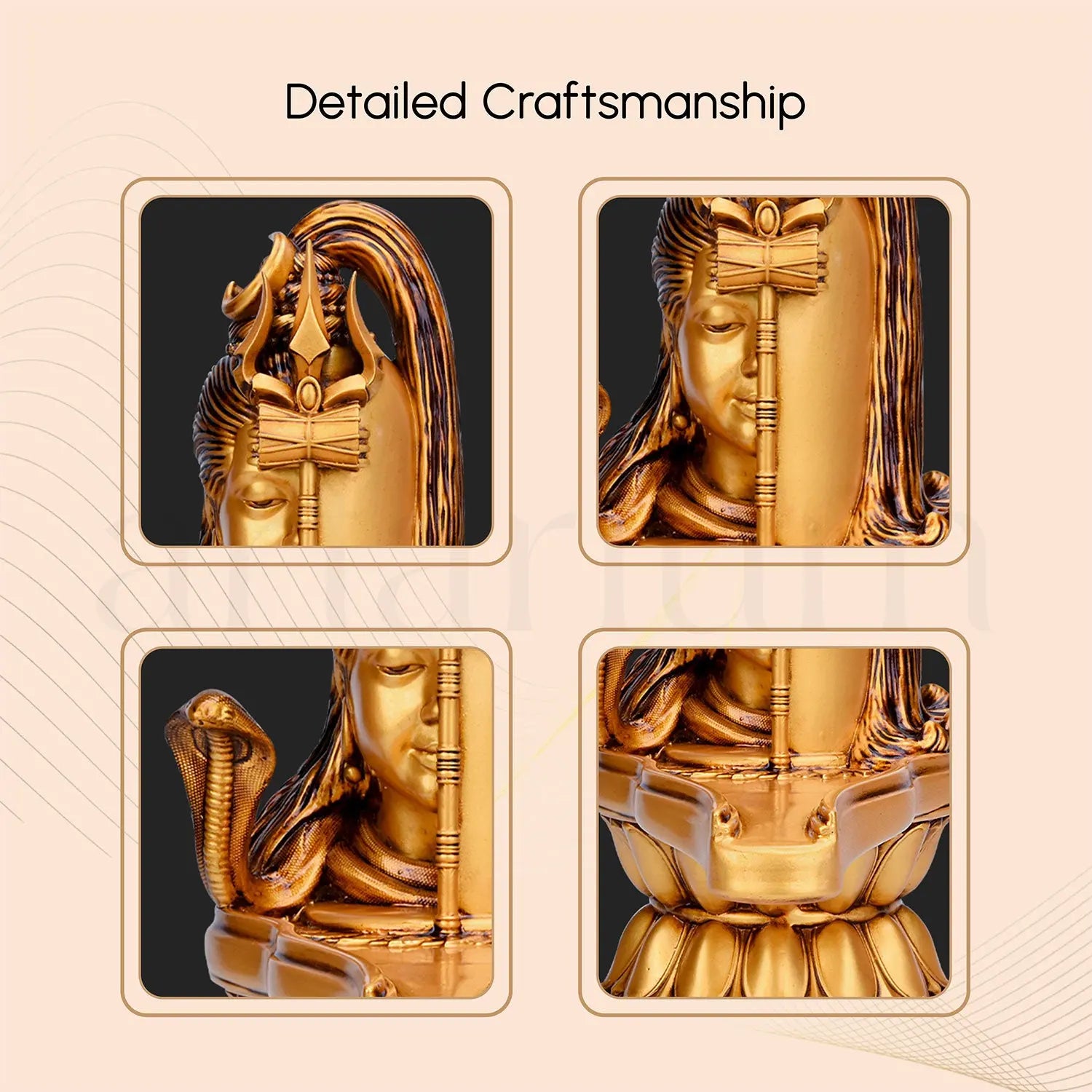 In front of Shiva's face, you will find a finely detailed Trident (Trishul), symbolising divine protection and strength. More than just a decorative item, this car dashboard idol is designed to purify your car’s space, protect against negative energy, and bring peace and positivity to every drive.
