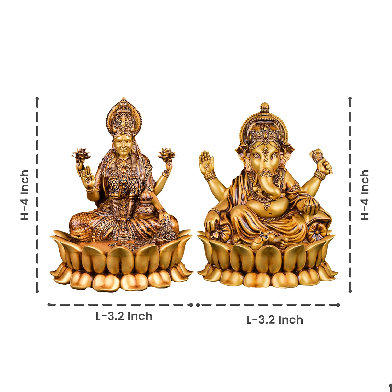 Bring home the blessings of prosperity, wisdom, and new beginnings with our Shree Laxmi & Vinayaka Idol Set. Designed in a radiant antique-gold finish, these idols instantly elevate any space with their sacred charm and exquisite detailing.