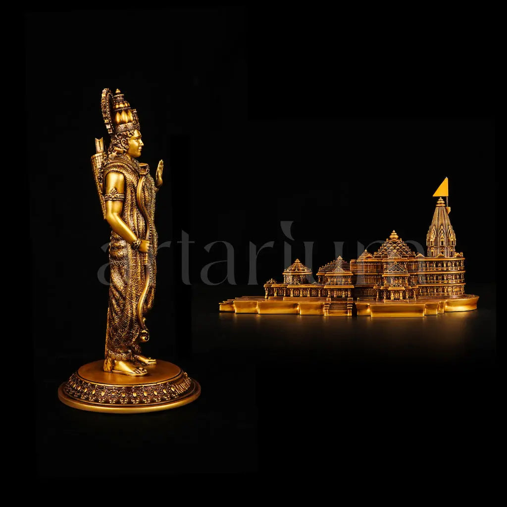 Lord Rama is widely known as a flawless embodiment of victory, dharma, and devotion. And bringing these ideals to the fore is this set of Shri Ram & Ayodhya Ram Mandir Murti, the perfect pair to fill your space with the teachings of the beloved deity.