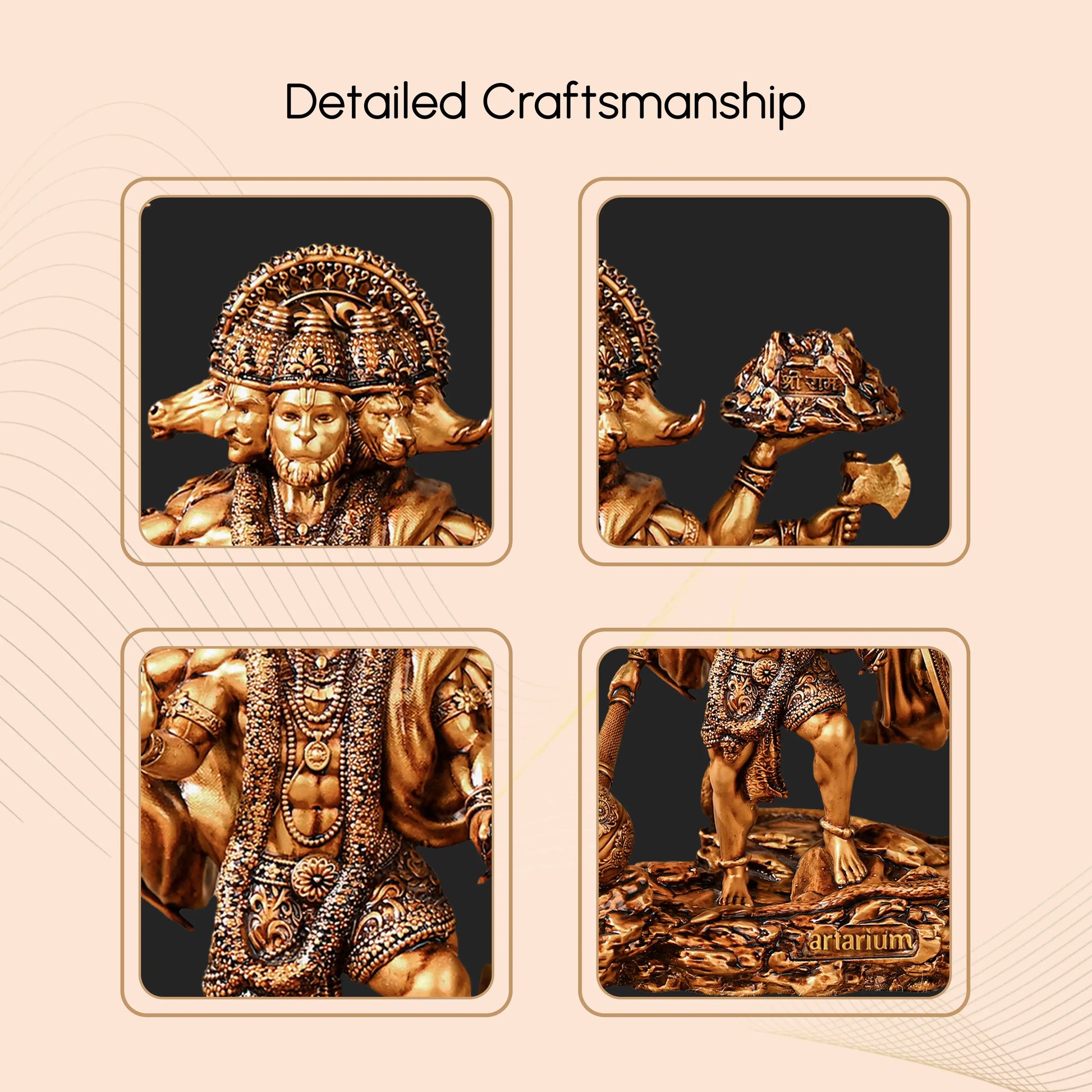 Buy Standing Panchmukhi Hanuman murti for Car Dashboard and enhance your vehicle's aura. This meticulously crafted Panchmukhi Hanuman idol for car combines spiritual significance with stunning craftsmanship. Featuring Lord Hanuman Ji standing tall, it represents the five faces of Panchmukhi Hanuman, symbolizing protection from all directions.