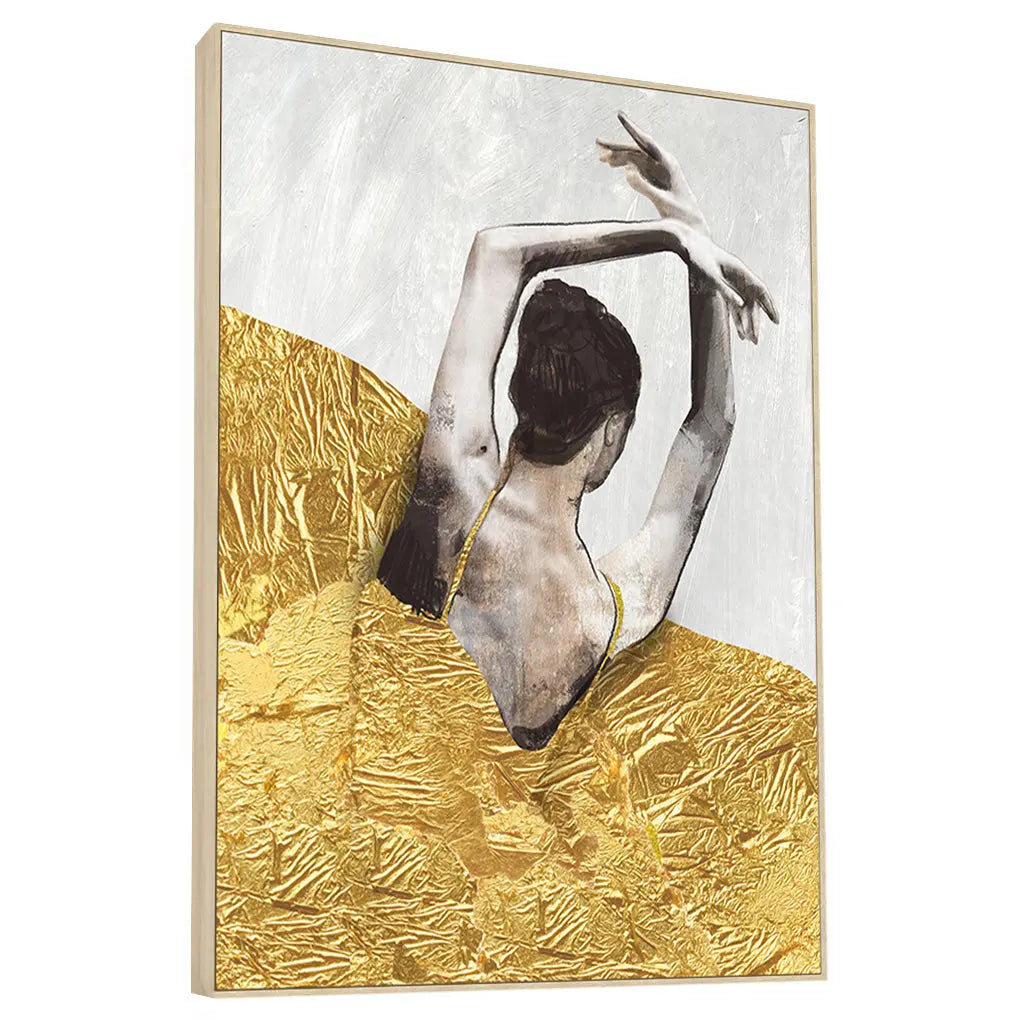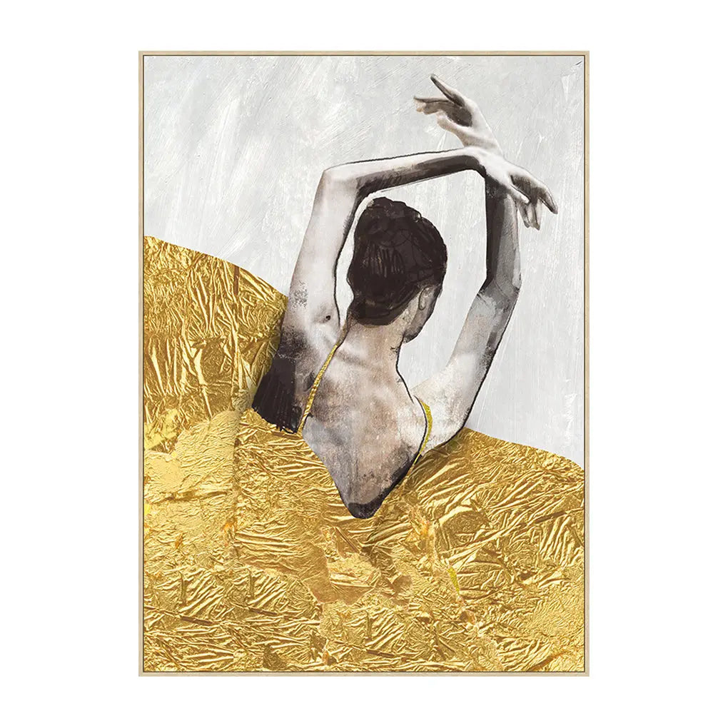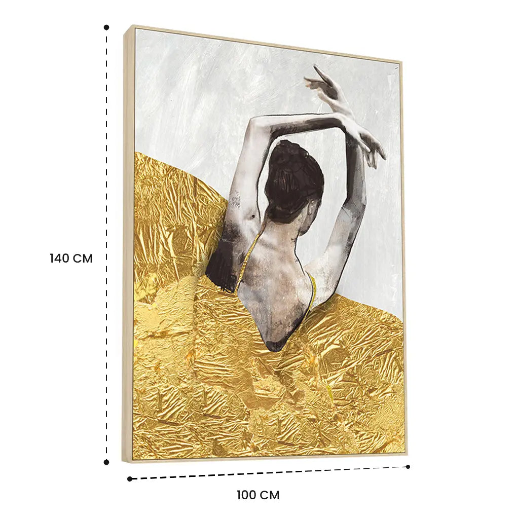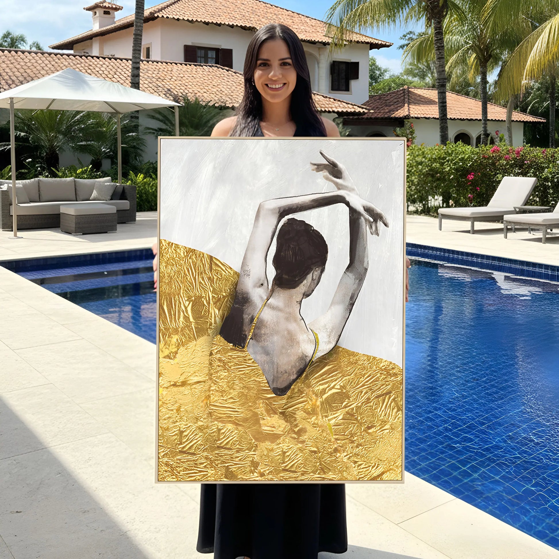 An ode to poise, power, and timeless femininity, The Star Ballerina is a striking study that captures the quiet elegance of a Ballerina mid-motion, immortalized in a moment of serene refinement. Rendered in a harmonious fusion of mixed media textures, the composition combines soft grayscale tones with lustrous gold detailing that radiates opulence. The crinkled golden foil effect evokes luxury, wrapping the figure in a fluid, sculptural elegance that demands attention.
