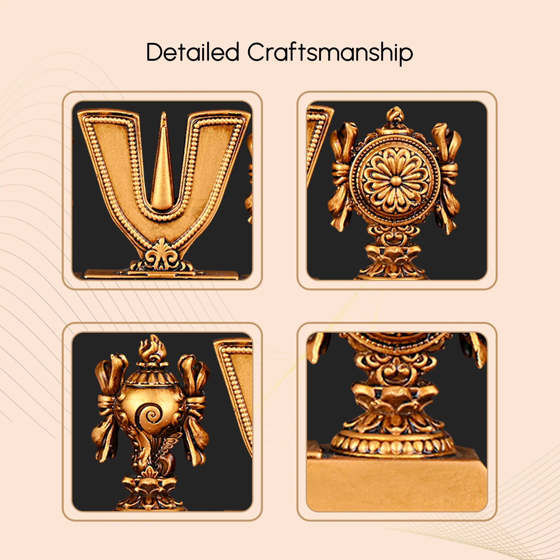 These sacred symbols together represent the strength and divine aura of Lord Padmanabha and are believed to bring peace & repel negative energy.