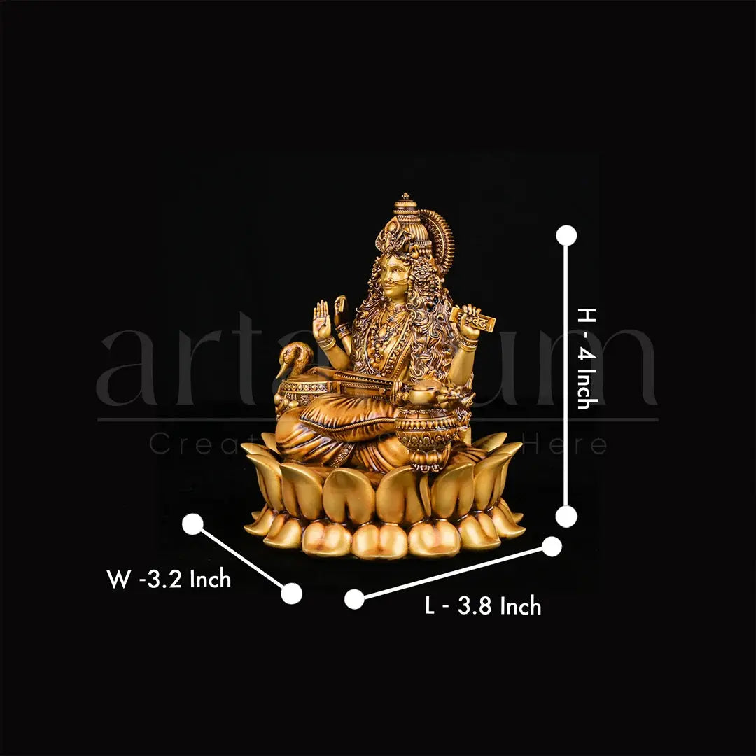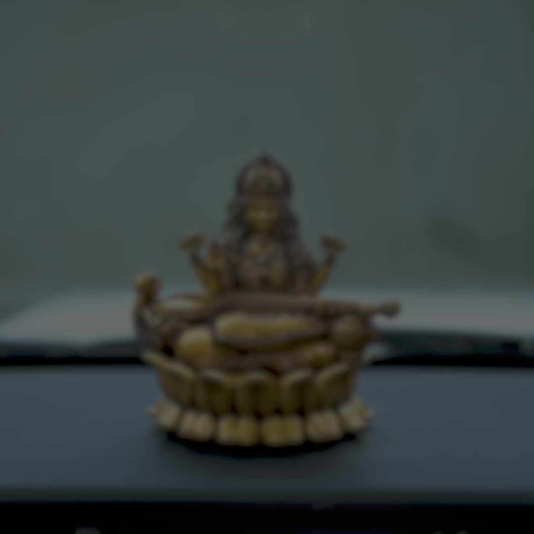 The Veena Vadini Saraswati Car Dashboard Idol is a beautifully handcrafted piece crafted by highly skilled artisans of the Artarium. This elegant idol shows Goddess Saraswati sitting gracefully on a lotus flower, holding a veena, which symbolises harmony, intelligence, and wisdom. Saraswati idol is the goddess of education, music, and creativity. The lotus flower she sits on represents supreme knowledge. Placing this idol on your car dashboard invites the blessings of Saraswati Mata, bringing peace and positivity wherever you go.