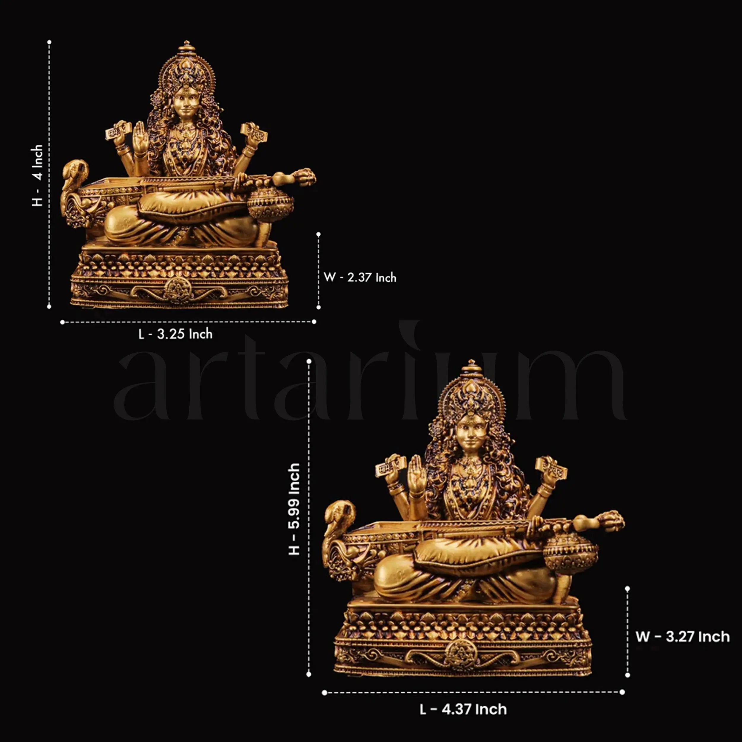 The Vidya Saraswati god Idol is a beautifully handcrafted piece by skilled artisans. This idol showcases Goddess Saraswati statue seated gracefully on a traditional chowki (stool), holding a veena, which symbolises knowledge, wisdom, and harmony. Revered as the goddess of education, music, and creativity, Saraswati Mata inspires learning and enlightenment. Perfect for any home, this idol brings an aura of peace, positivity, and spiritual growth to your living space. It’s a wonderful addition to your home decor, infusing your environment with grace and wisdom. Saraswati’s faithful companion, the swan, is also present, representing purity and discernment.