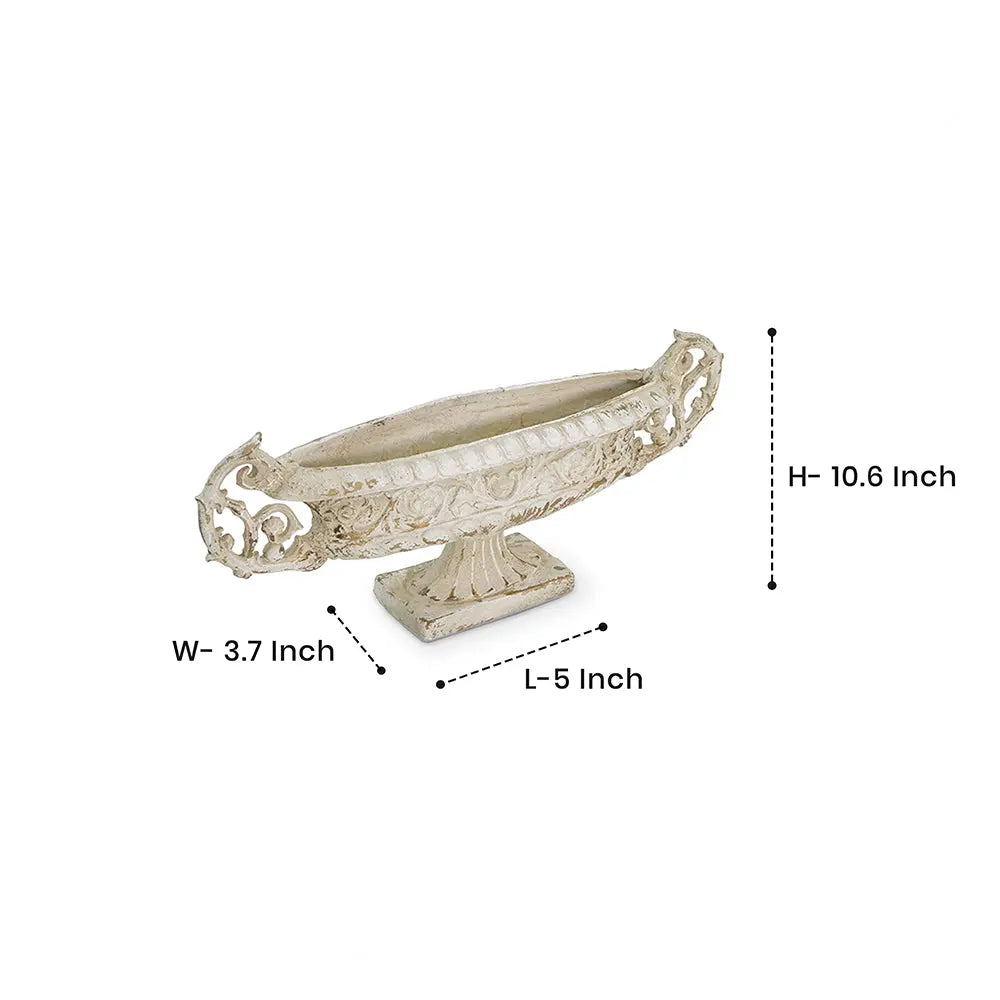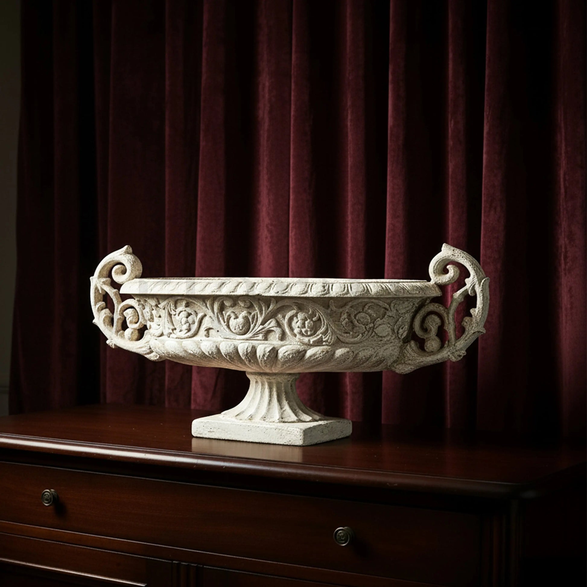 Bring home the grandeur of classic elegance with this delicately sculpted French vase coined View from Versailles. Crafted in magnesium with ornate detailing and a weathered antique finish, this statement piece echoes the splendor of Versailles gardens. From its intricate scroll handles to its timeworn patina, every element whispers vintage charm and aristocratic allure. Style it with faux florals or let it stand solo as a statement accent.