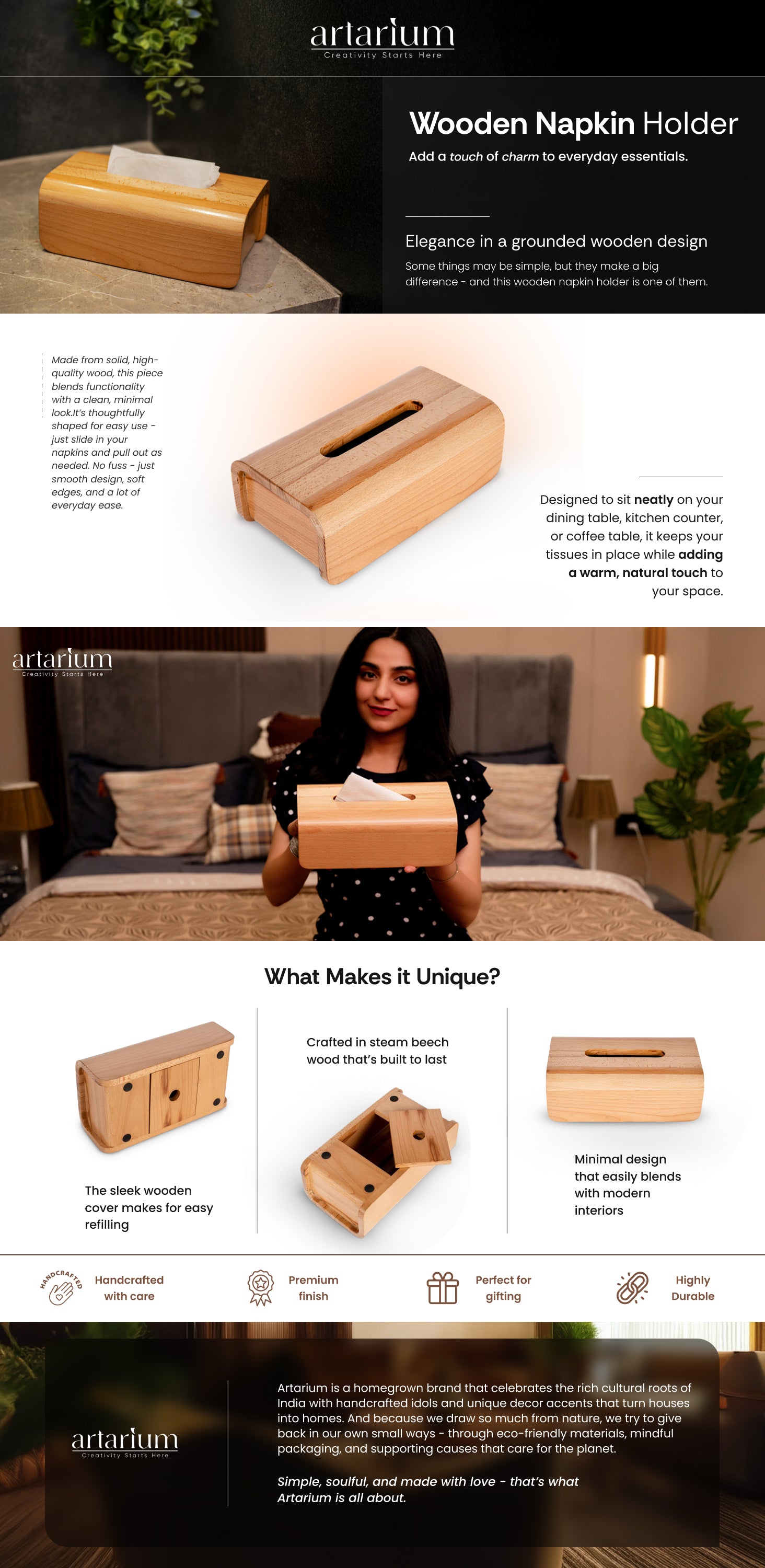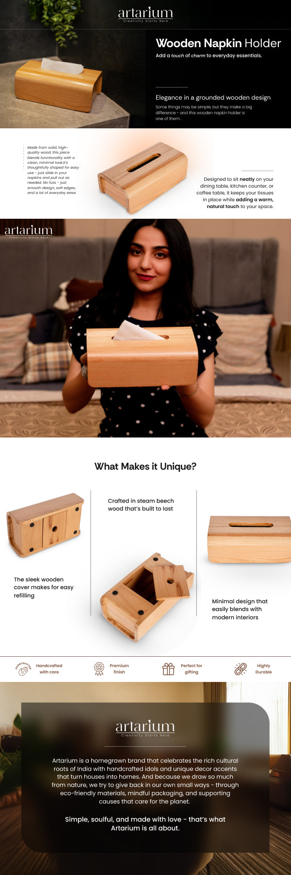 Bring a stylish tissue holder for sophisticated desk decor. The Wooden Napkin Holder instantly upgrades any space while also allowing you to keep it tidy and neat. The sleek design of this wooden box instantly catches the attention, giving you a sophisticated addition that is both practical and refined.